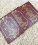 Bagi pelanggan VVIP kami pula, kami menawarkan buku yang Hardcover printing & hotstamping. Pelanggan-pelanggan kami akan mendapat kelainan dalam kualiti buku hardcover yasin ini kerana ia keras dan tahan lebih lama. Yang penting lebih PREMIUM untuk tetamu anda.