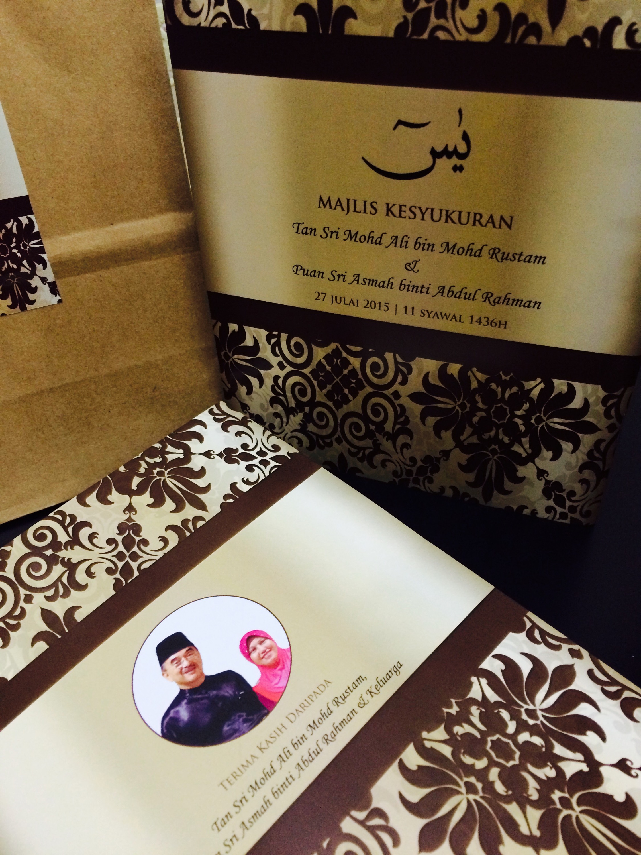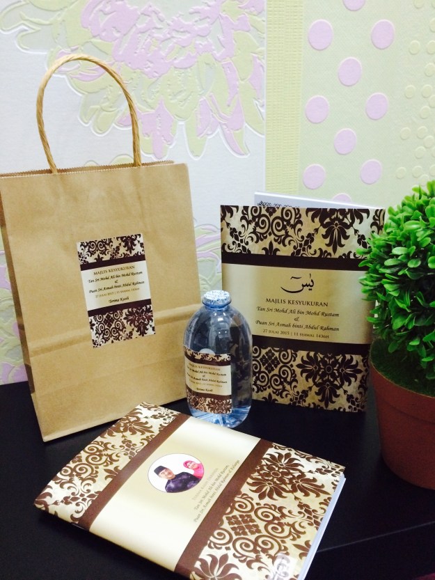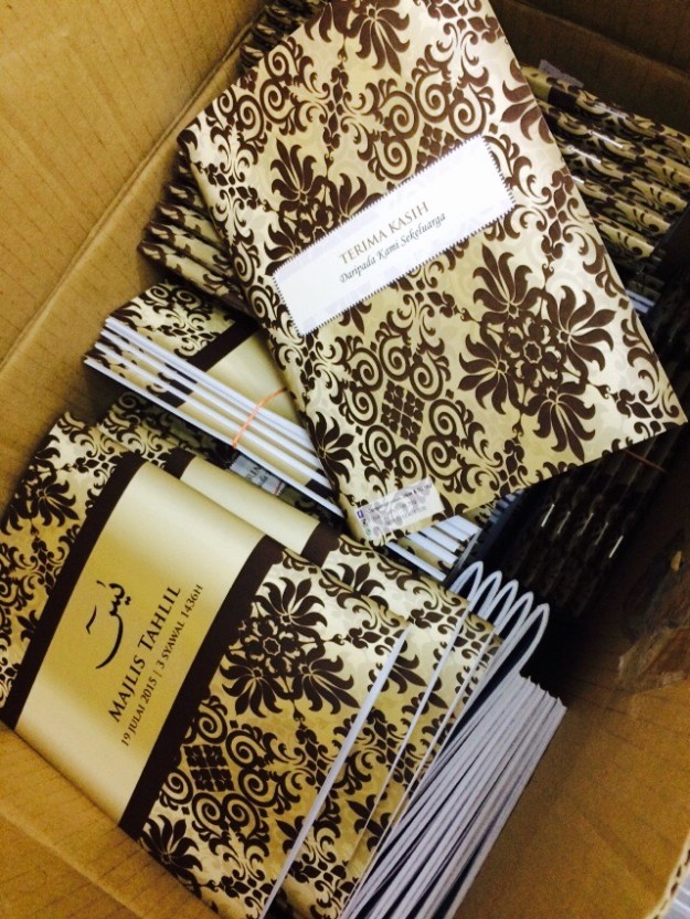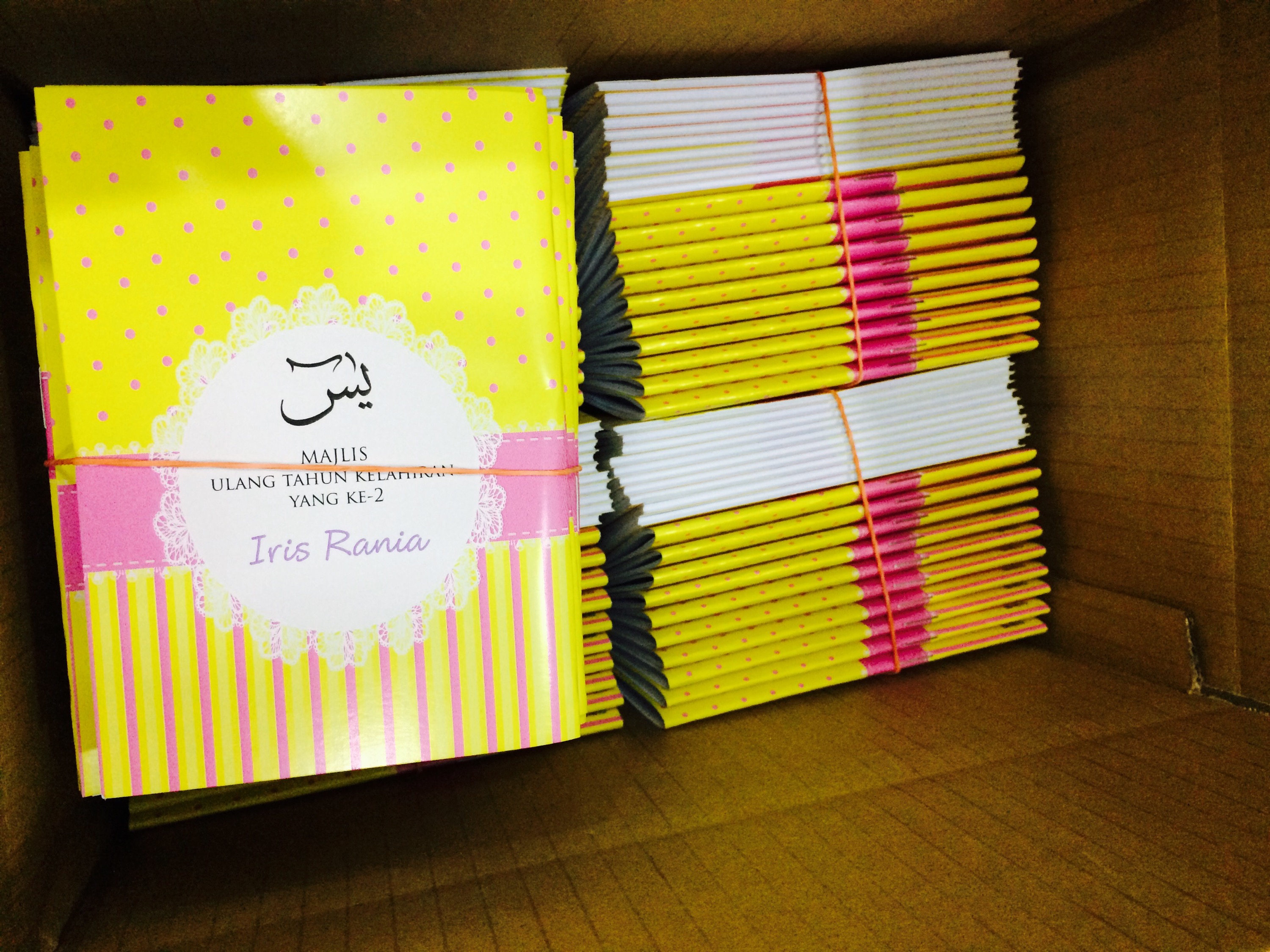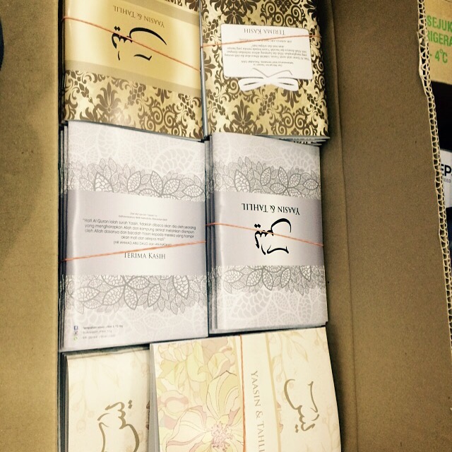 Alhamdulilah tempahan buku yasin customised drp Tan Sri Ali Rustam siap 300pcs sempena majlis kesyukuran.