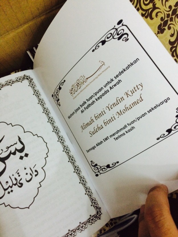 kali ni kami sempat utk update tempahan yasin untuk majlis tahlil pula,