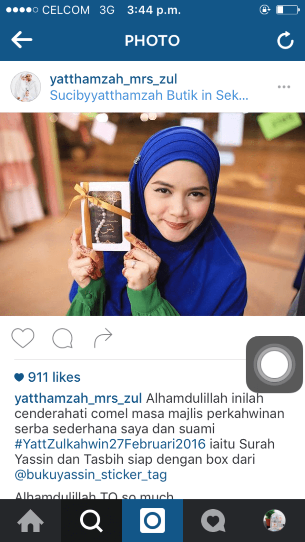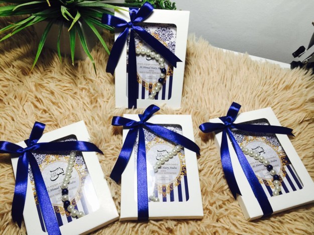 Alhamdulilah team tempahan yassin sekali lagi sgt bertuah krn menjadi sebahagian drp team yang menjayakan majlis yatt hamzah dan suami. Doorgift tempahan yassin lengkap dgn tasbih,kotak dan riben pelengkap utk tetamu yg hadir. Untuk tempahan doorgift yassin anda boleh lah ke kedai atau whtapps kami terus die nombor yang tertera di sebelah kanan ni.