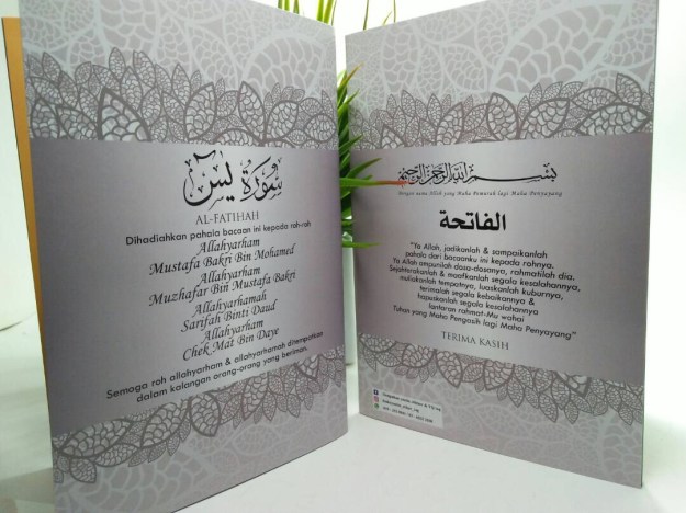 Terima kasih atas tempahan buku yasin custom untuk majlis tahlil, semoga Allah permudahkan segala urusan anda semua. Untuk tempahan buku yasin custom, anda boleh la whtapps kami di 0192520041