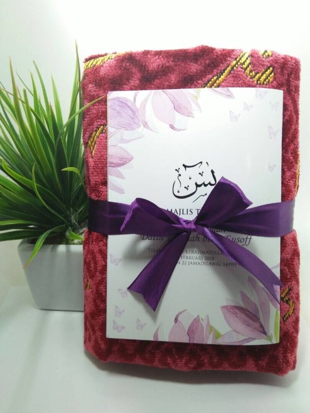 Terima kasih atas tempahan doorgift buku yasin set sejadah besar, kami doakan majlis anda berjalan lancar. Untuk tempahan buku yasin custom ataupun set doorgift yasin dan sejadah besar, anda boleh la whatsapp kami di 0192520041 or terus ke kedai kami.