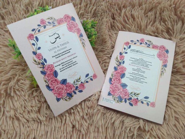 Tempahan buku yasin customised ini, anda boleh la whatsapp kami di 0192520041 ya. Isi dalam buku yasin kami berwarna.