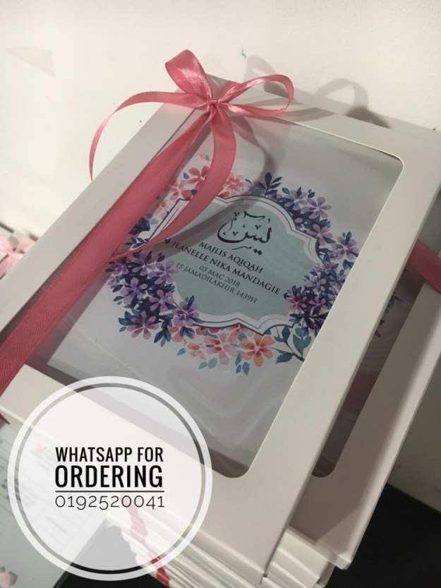 Terima kasih atas tempahan doorgift buku yasin custom. kami doakan majlis anda berjalan lancar. Untuk tempahan buku yasin custom ataupun set doorgift yasin dan sejadah besar, anda boleh la whatsapp kami di 0192520041 or terus ke kedai kami.