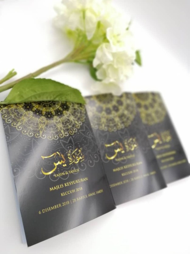 Terima kasih atas tempahan buku yasin custom cover ini, dengan sentuhan daripada tempahan yassin, buku yasin custom menjadi lebih special apabila kami print terus wording di cover buku yasin.