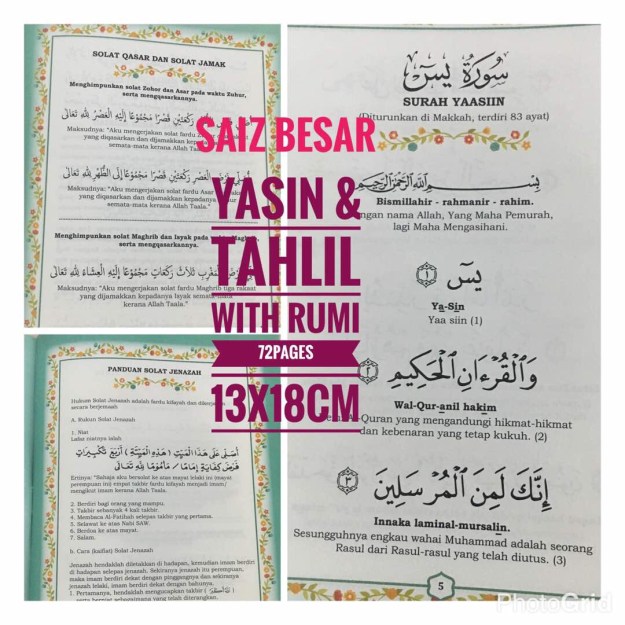 Apa specialnya kami? Buku yasin kami lengkap dengan tahlil, isi dalam semua berwarna dan siap dengan terjemahan bahasa melayu / yasin terjemahan bahasa inggeris juga.