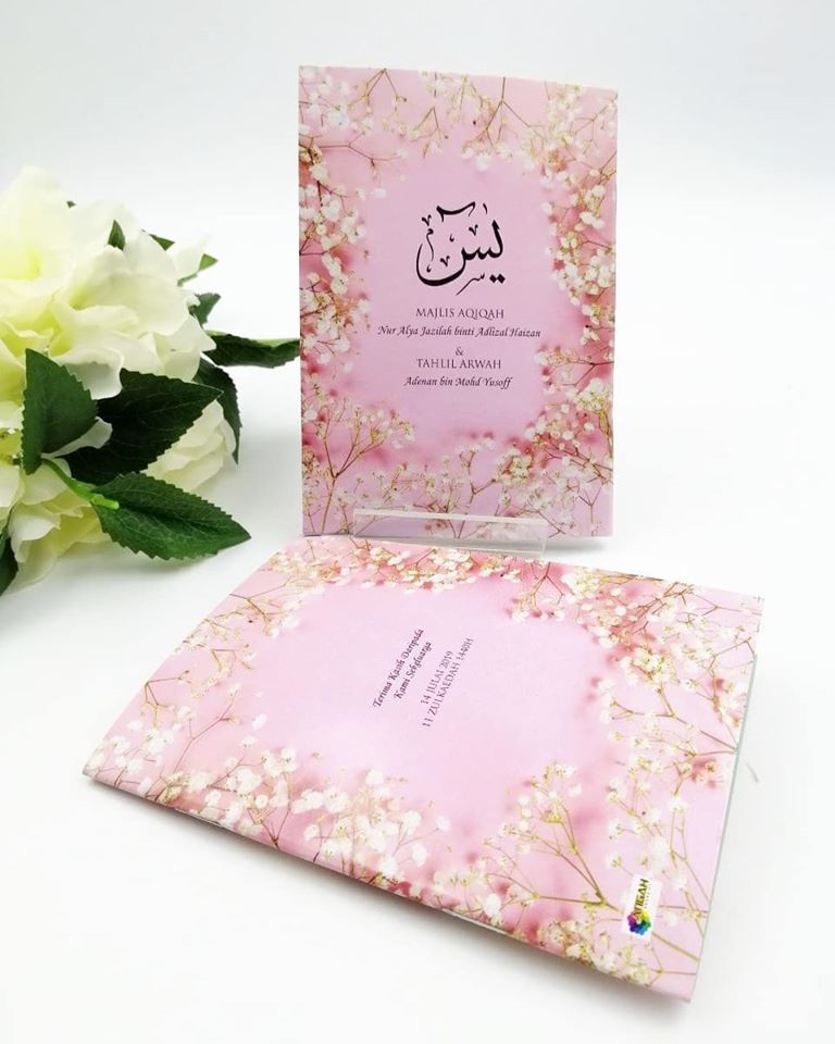 Kami berharap agar anda berpuas hati dengan servis yang tempahan yasin custom cover berikan. Buku yasin custom kami dilengkapi dengan Surah Yasin, Surah Al-Kahfi, Surah Al-Waqiah, Surah Al-Mulk, Surah Ar-Rahman, Al-Mathurat, Manzil, Asma’ul Husna, Solat Jenazah, Panduan Solat Jenazah dan pelbagai lagi content yang bermanfaat buat amalan harian anda. Kami mempunyai lebih 500 pilihan design yang pasti akan memuaskan hati anda semua.