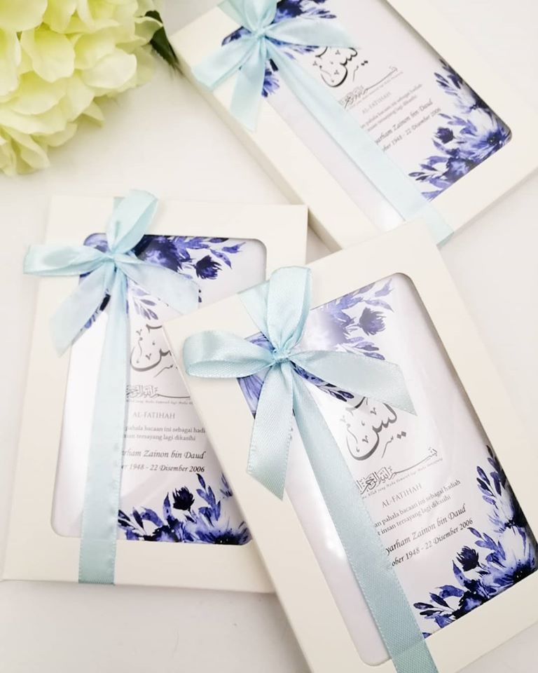 Untuk tempahan buku yasin custom, anda boleh terus click di sini atau whatsapp kami di 0192520041, atau terus ke showroom kami dengan waze: Angah Doorgift And Printing Sdn Bhd.