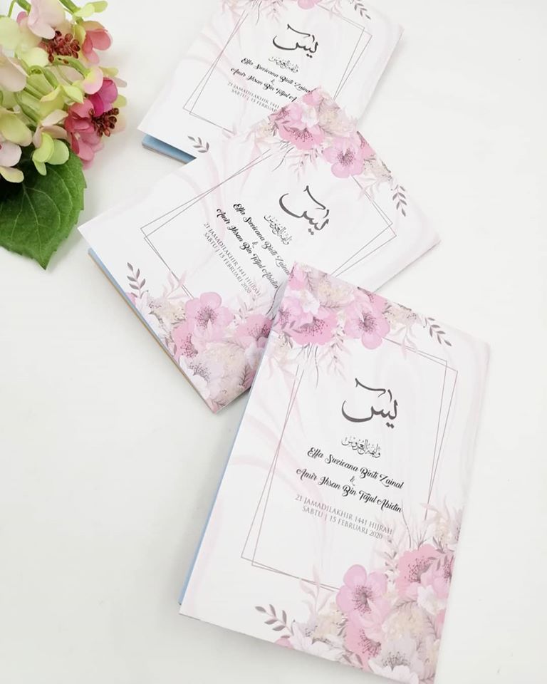 Kami berharap agar anda berpuas hati dengan servis yang tempahan yasin custom cover berikan. Buku yasin custom kami dilengkapi dengan surah yasin, tahlil ringkas, doa selamat,  panduan solat jenazah, solat qasar dan jamak, zikir harian dan doa-doa yang lain juga. Kami mempunyai lebih 500 pilihan design yang pasti akan memuaskan hati anda semua.