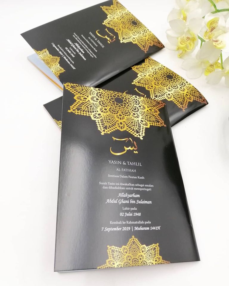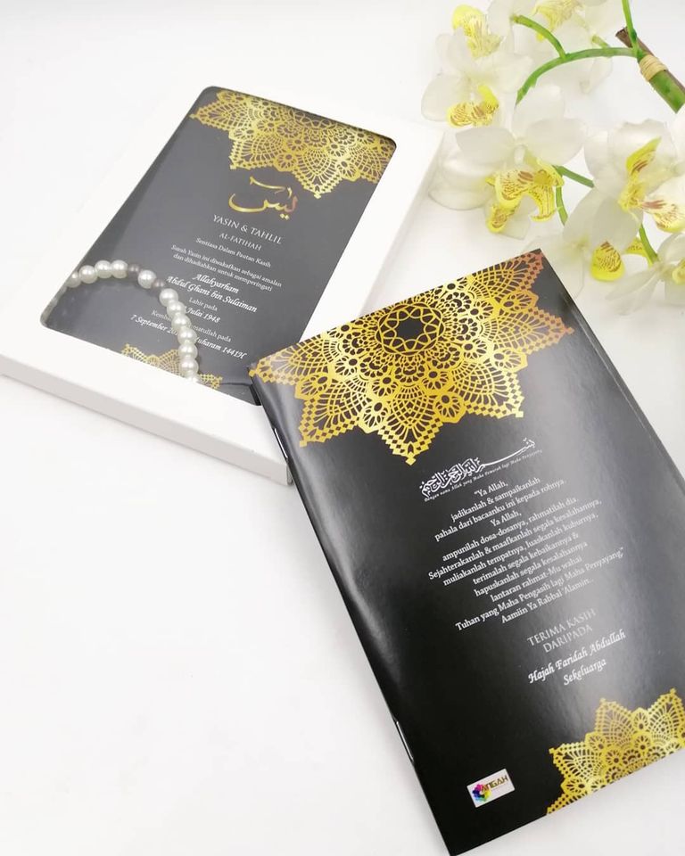 Untuk tempahan buku yasin custom, anda boleh terus click di sini atau whatsapp kami di 0192520041, atau terus ke showroom kami dengan waze: Angah Doorgift And Printing Sdn Bhd.