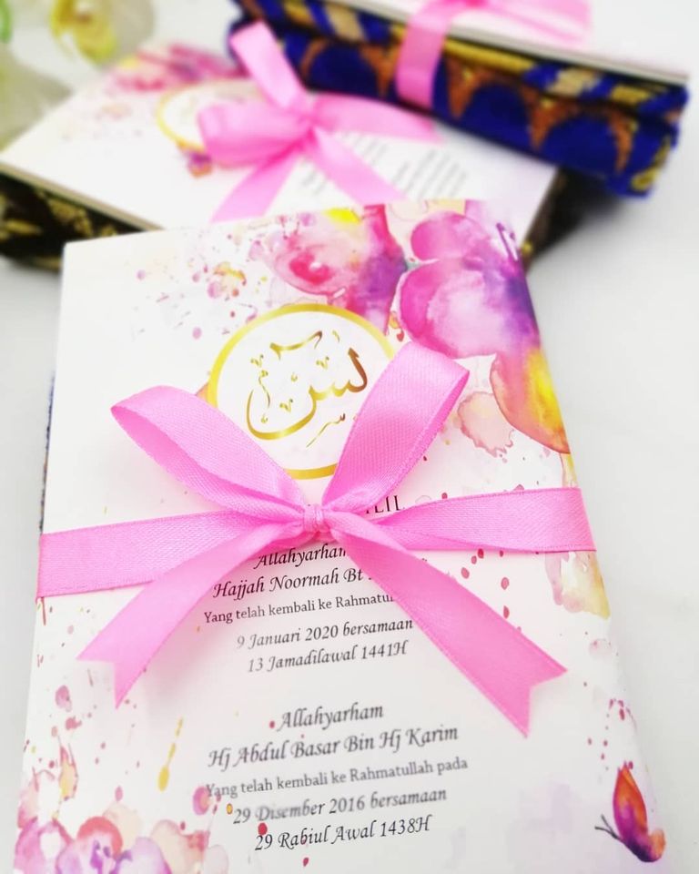 Untuk tempahan buku yasin custom, anda boleh terus click di sini atau whatsapp kami di 0192520041, atau terus ke showroom kami dengan waze: Angah Doorgift And Printing Sdn Bhd.