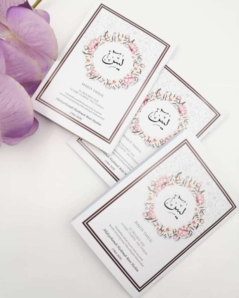 Kami berharap agar anda berpuas hati dengan servis yang tempahan yasin custom cover berikan. Buku yasin custom kami dilengkapi dengan Surah Yasin, Doa Yasin, Tahlil Ringkas, Doa Selamat, Doa Akhir Tahun Hijriah, Doa Awal Tahun Hijriah, Amalan Zikir Harian, Solat Jamak, Solat Qasar, Asma’ul Husna, Panduan Solat Jenazan dan pelbagai lagi content yang bermanfaat buat anda. Kami mempunyai lebih 500 pilihan design yang pasti akan memuaskan hati anda semua.