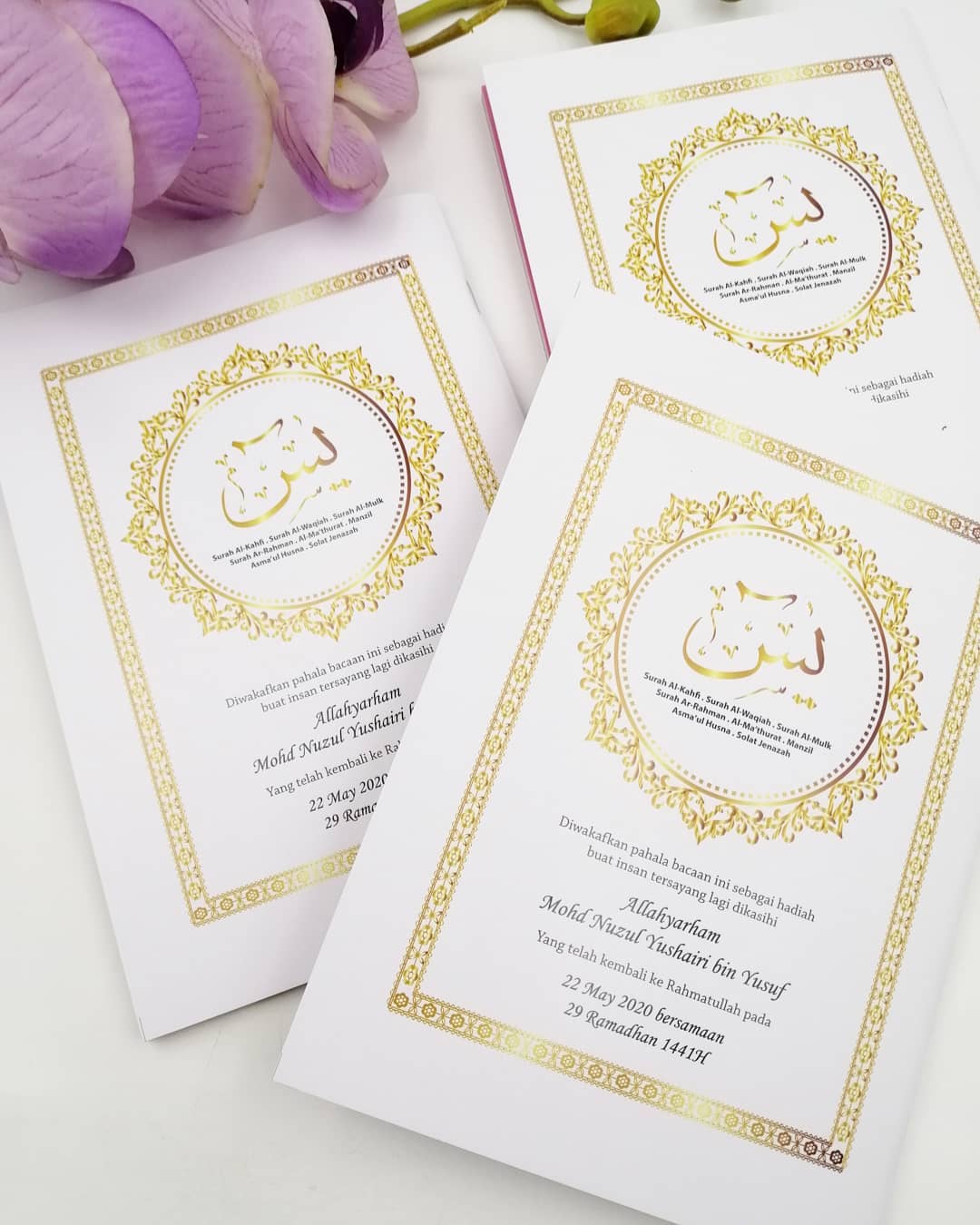 Untuk tempahan buku yasin custom, anda boleh terus click di sini or whatsapp kami 0192520041, atau terus ke showroom kami dengan waze: Angah Doorgift And Printing Sdn Bhd