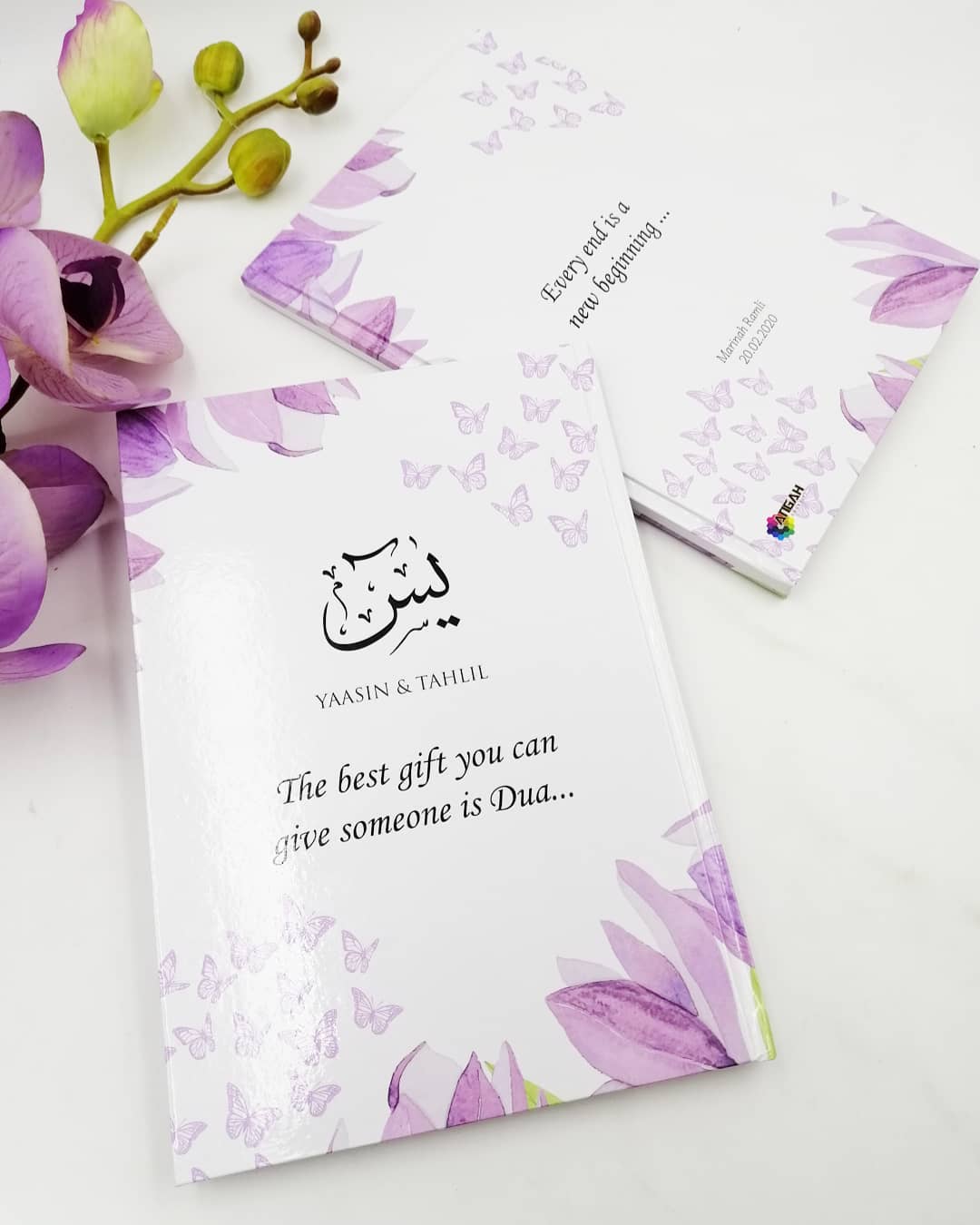 Untuk tempahan buku yasin custom, anda boleh terus click di sini or whatsapp kami 0192520041, atau terus ke showroom kami dengan waze: Angah Doorgift And Printing Sdn Bhd