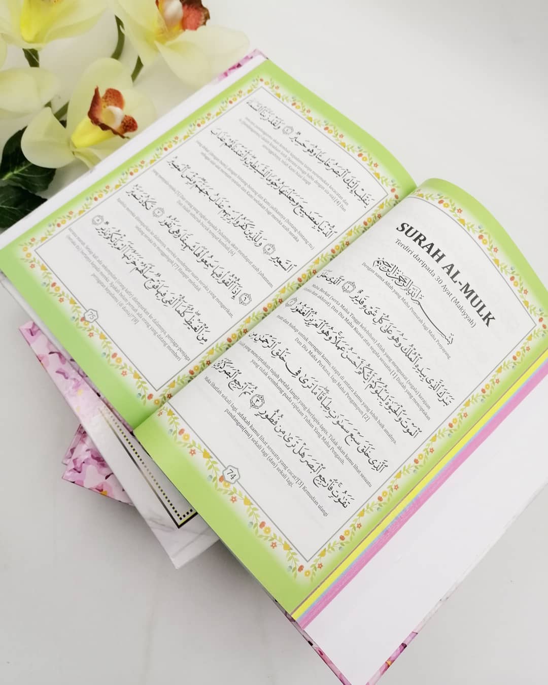 Hardcover buku yasin custom kami mengunakan hardcover dan mempunyai 133 muka surat. Hardcover custom kami mempunyai 2 jenis iaitu Hot Stamping Gold/Silver dan Printing Full Color serta lengkap dengan tahlil. Minimum tempahan Hardcover buku yasin custom adalah 50pcs. Bukan itu sahaja, anda juga boleh letak wording anda pada cover buku. Kami menjual Yasin yang berkualiti dan di design khas untuk memudahkan pembacaan dan pemahaman maksud ayat dengan tulisan yang besar, jelas & cantik.