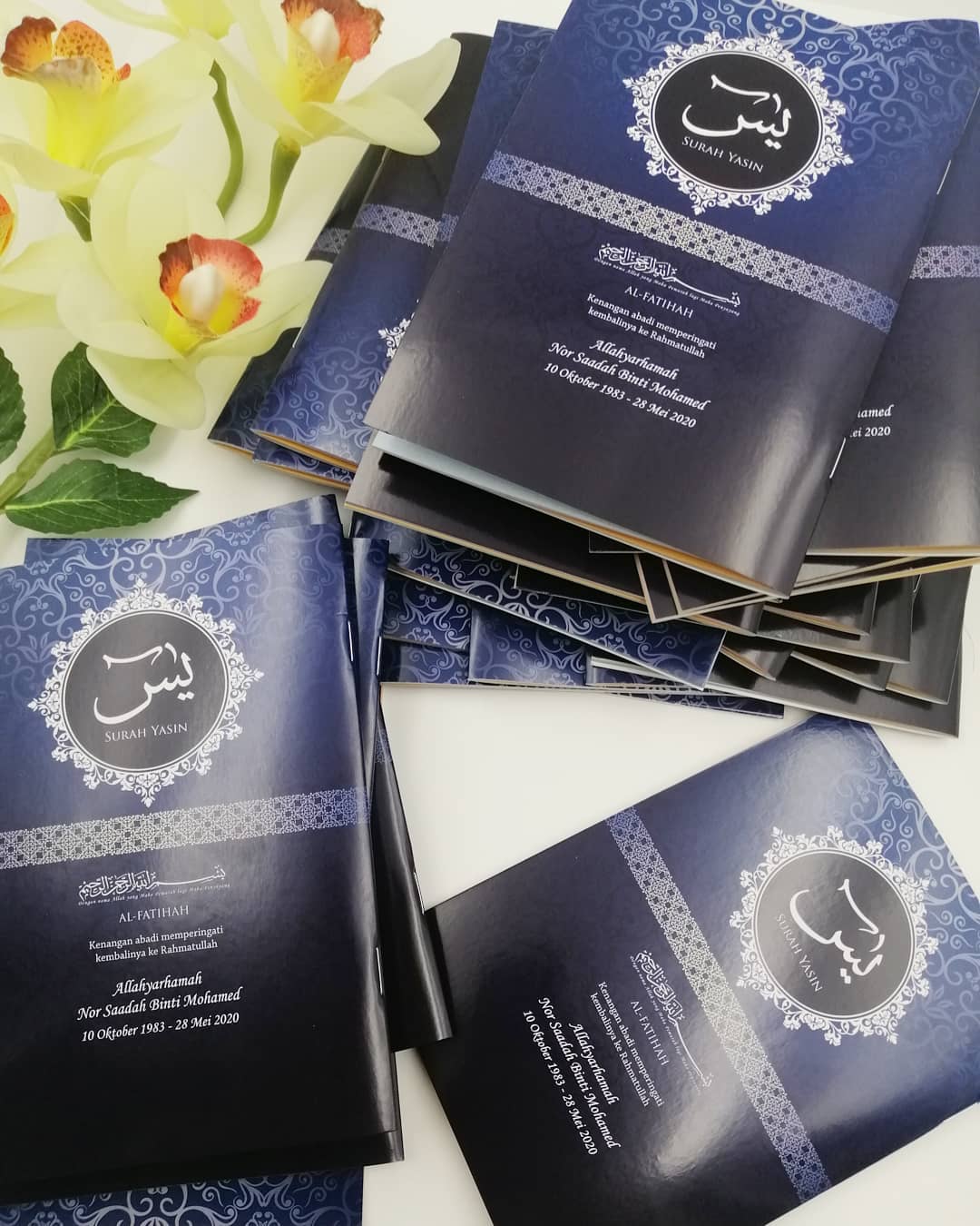 Untuk tempahan buku yasin custom, anda boleh terus click di sini atau whatsapp kami di 0192520041, atau terus ke showroom kami dengan waze: Angah Doorgift And Printing Sdn Bhd.