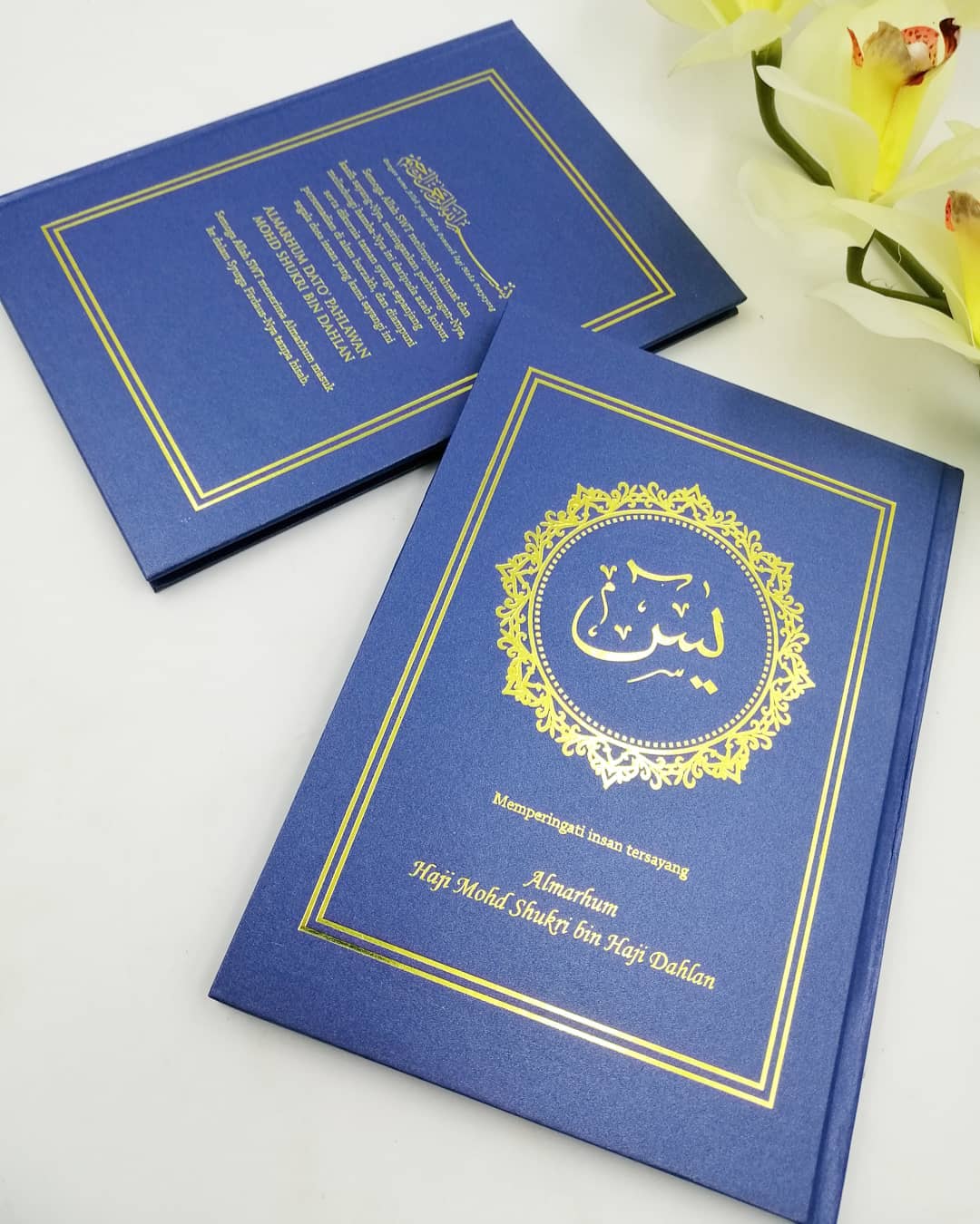 Kami berharap agar anda berpuas hati dengan servis yang tempahan yasin custom cover berikan. Buku yasin custom kami dilengkapi dengan Surah Yasin, Surah Al-Kahfi, Surah Al-Waqiah, Surah Al-Mulk, Surah Ar-Rahman, Al-Mathurat, Manzil, Asma’ul Husna, Solat Jenazah, Panduan Solat Jenazah dan pelbagai lagi content yang bermanfaat buat amalan harian anda. Kami mempunyai lebih 500 pilihan design yang pasti akan memuaskan hati anda semua.