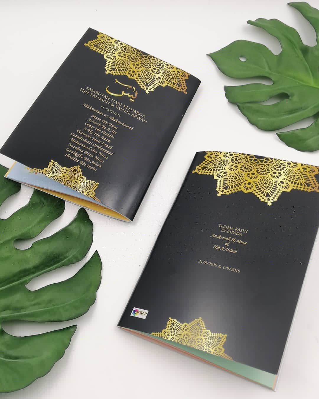 Untuk tempahan buku yasin custom, anda boleh terus click di sini atau whatsapp kami di 0192520041, atau terus ke showroom kami dengan waze: Angah Doorgift And Printing Sdn Bhd.