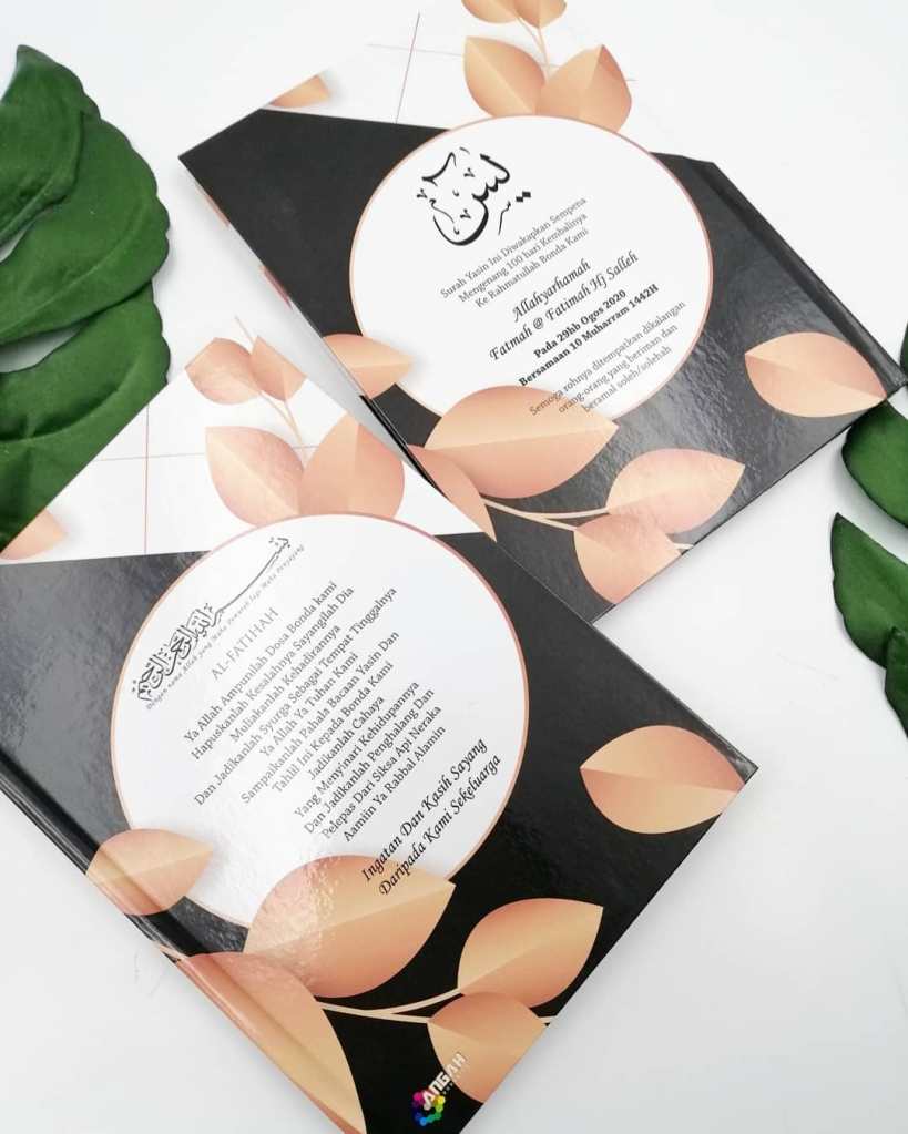 Untuk tempahan buku yasin custom, anda boleh terus click di sini or whatsapp kami 0192520041, atau terus ke showroom kami dengan waze: Angah Doorgift And Printing Sdn Bhd.