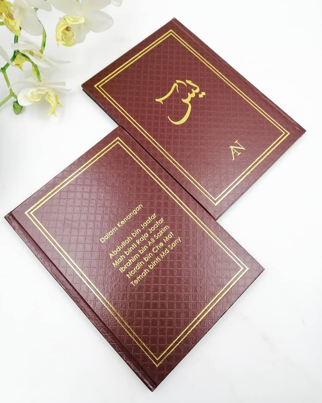Terima kasih di atas tempahan Yasin Hardcover Hotstamping Gold ini, kami di tempahan yasin custom cover akan sentiasa memberikan servis yang terbaik untuk menghasilkan buku yasin custom cover ini buat pelanggan-pelanggan kesayangan kami.