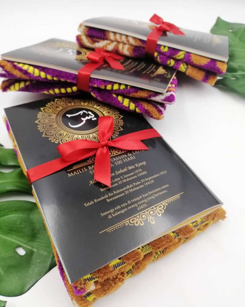 Untuk tempahan buku yasin custom, anda boleh terus click di sini atau whatsapp kami di 0192520041, atau terus ke showroom kami dengan waze: Angah Doorgift And Printing Sdn Bhd.