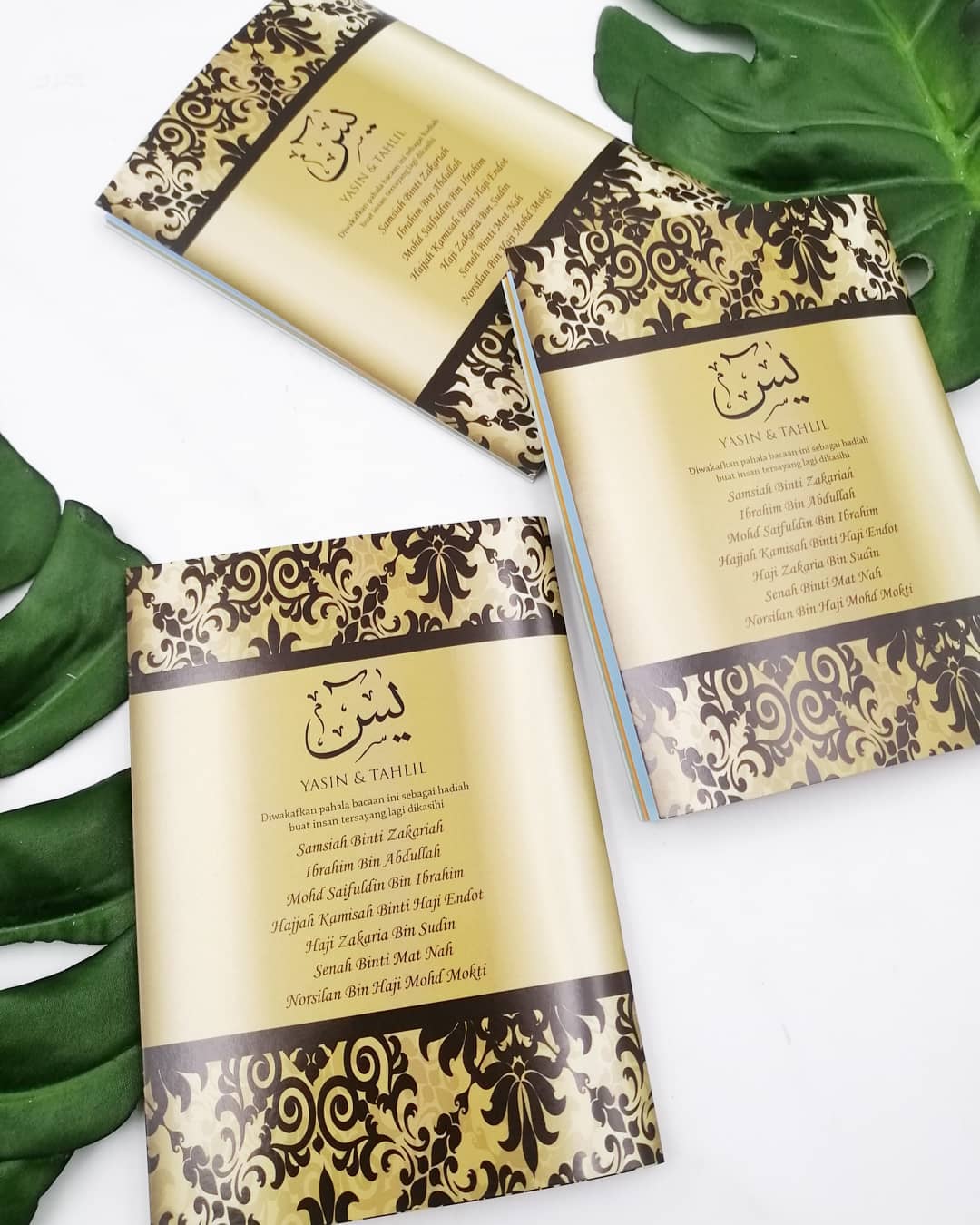 Untuk tempahan buku yasin custom, anda boleh terus click di sini atau whatsapp kami di 0192520041, atau terus ke showroom kami dengan waze: Angah Doorgift And Printing Sdn Bhd.