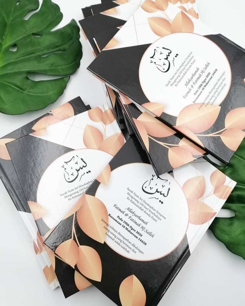 Semoga buku yasin custom cover yang kami hasilkan ini dapat memberi kebaikan dan tambah nilai kepada tetamu anda. Terima kasih di atas tempahan buku yasin custom ini untuk majlis anda.