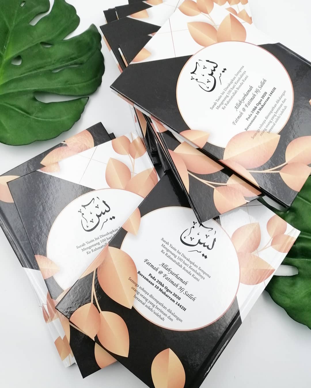 Untuk tempahan buku yasin custom, anda boleh terus click di sini or whatsapp kami 0192520041, atau terus ke showroom kami dengan waze: Angah Doorgift And Printing Sdn Bhd