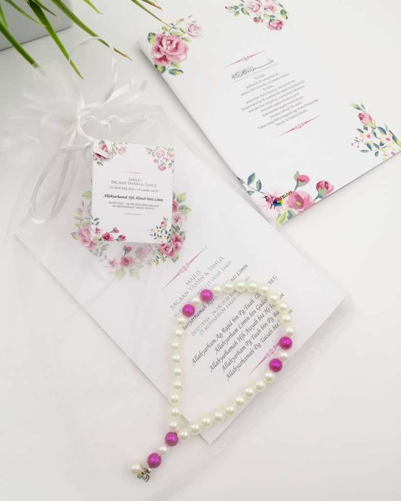 Buku Yasin Custom Cover dengan Pelbagai Pilihan Set, Set Organza, TQ Tag & Tasbih