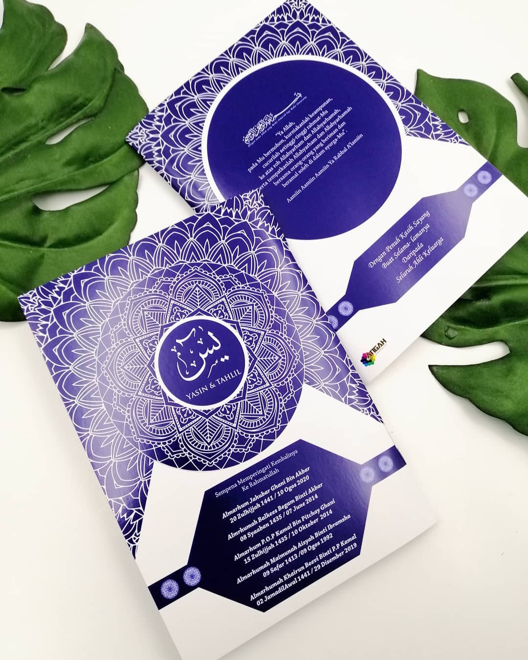 Untuk tempahan buku yasin custom, anda boleh terus click di sini or whatsapp kami 0192520041, atau terus ke showroom kami dengan waze: Angah Doorgift And Printing Sdn Bhd