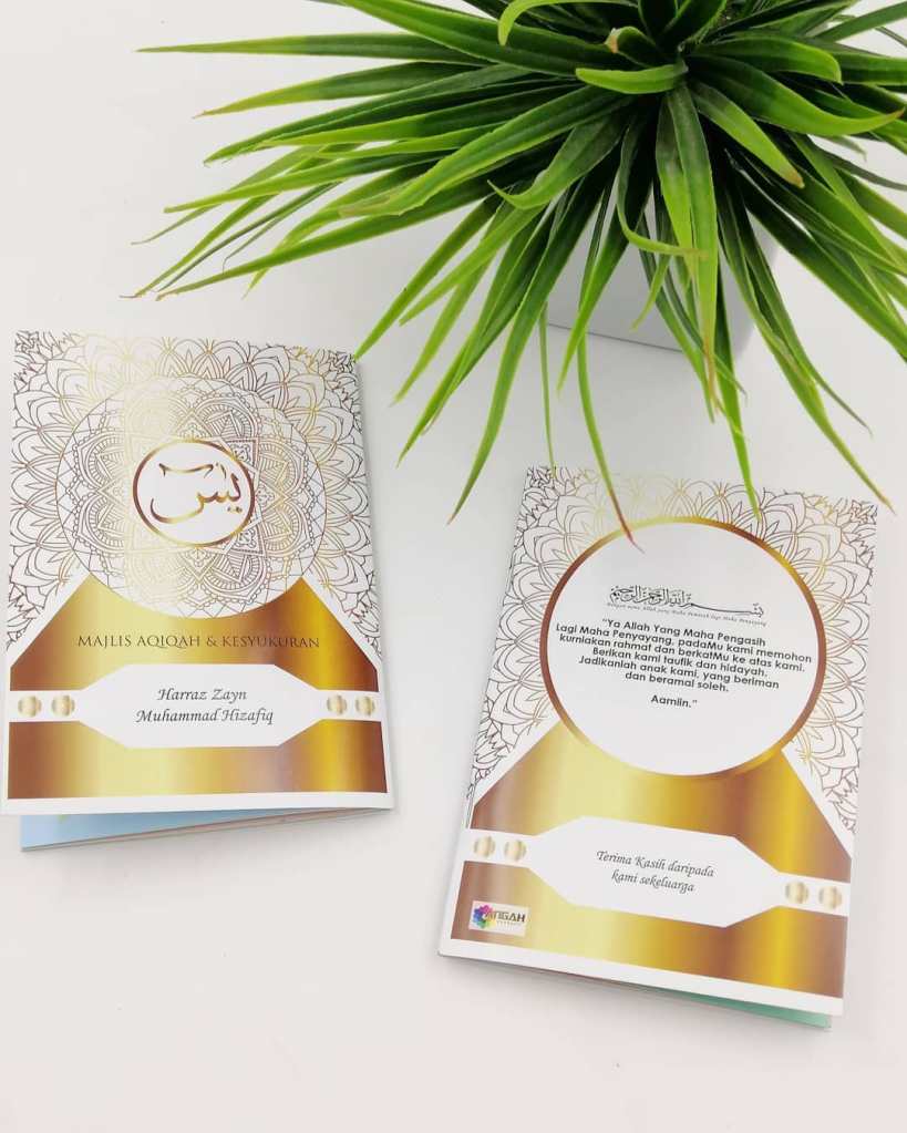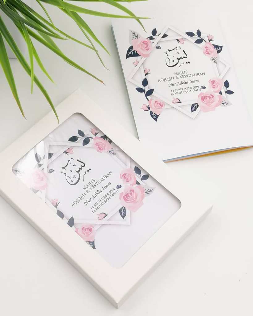 Kami berharap agar anda berpuas hati dengan servis yang tempahan yasin custom cover berikan. Buku yasin custom kami dilengkapi dengan Surah Yasin, Surah Al-Kahfi, Surah Al-Waqiah, Surah Al-Mulk, Surah Ar-Rahman, Al-Mathurat, Manzil, Asma’ul Husna, Solat Jenazah, Panduan Solat Jenazah dan pelbagai lagi content yang bermanfaat buat amalan harian anda. Kami mempunyai lebih 500 pilihan design yang pasti akan memuaskan hati anda semua.