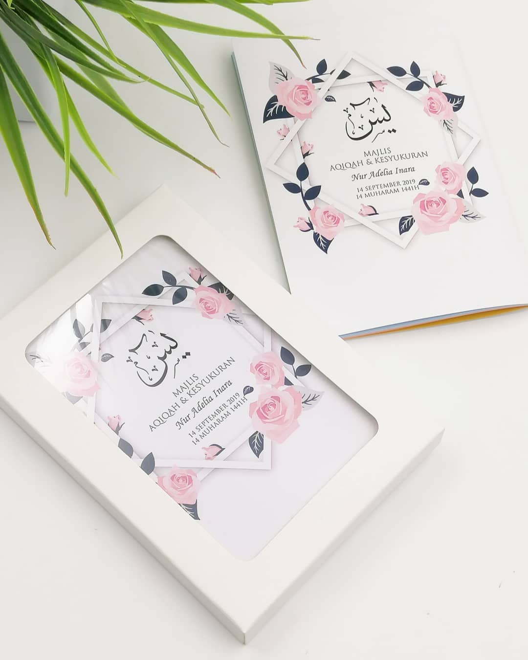 Kami berharap agar anda berpuas hati dengan servis yang tempahan yasin custom cover berikan. Buku yasin custom kami dilengkapi dengan Surah Yasin, Surah Al-Kahfi, Surah Al-Waqiah, Surah Al-Mulk, Surah Ar-Rahman, Al-Mathurat, Manzil, Asma’ul Husna, Solat Jenazah, Panduan Solat Jenazah dan pelbagai lagi content yang bermanfaat buat amalan harian anda. Kami mempunyai lebih 500 pilihan design yang pasti akan memuaskan hati anda semua.