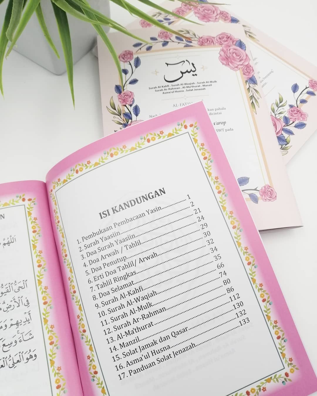 Buku Yasin Custom Cover bersama Al-Kahfi, Ar-Rahman, Al-Mulk, Al-Waqiah