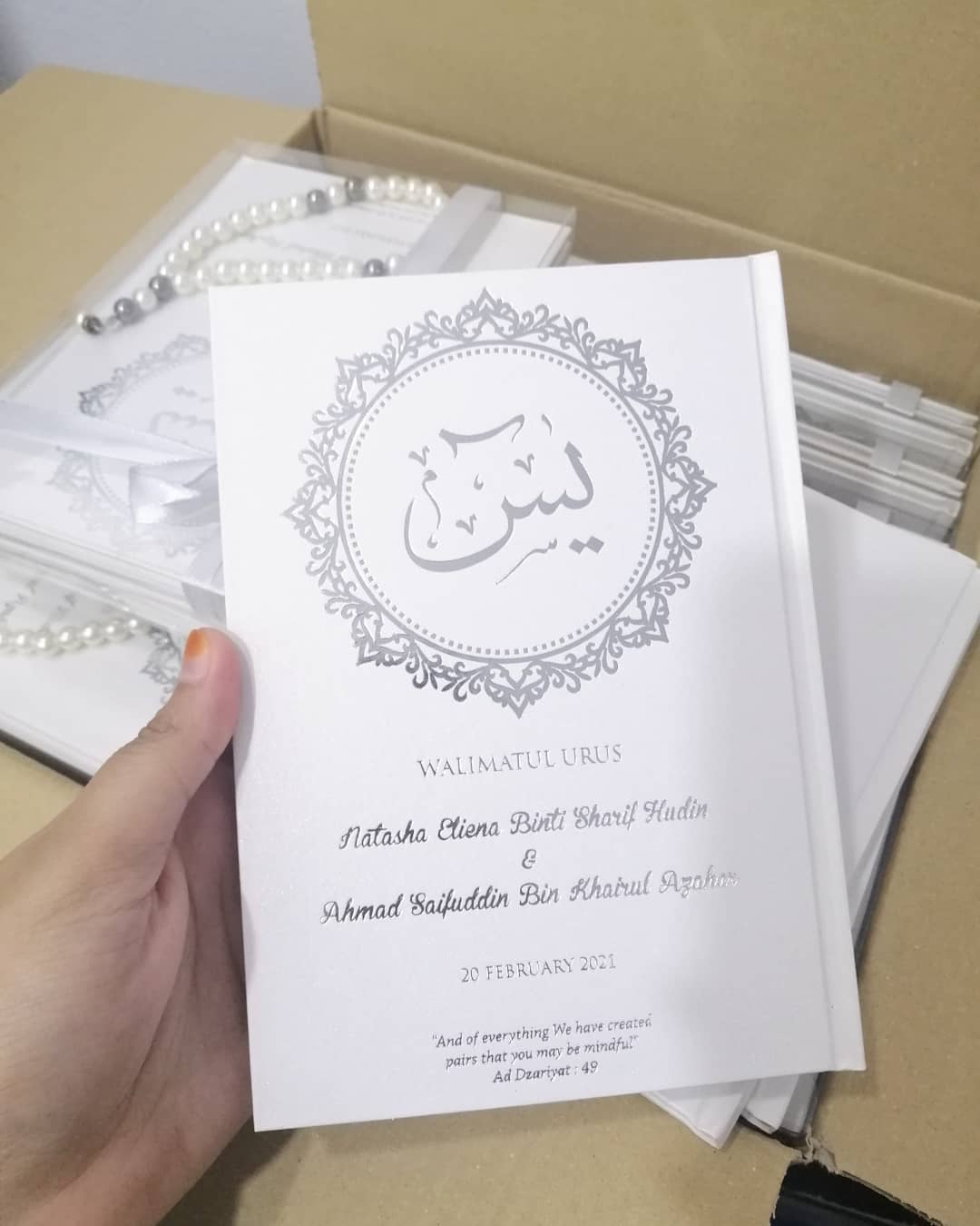 Kami berharap agar anda berpuas hati dengan servis yang tempahan yasin custom cover berikan. Buku yasin custom kami dilengkapi dengan Surah Yasin, Doa Yasin, Tahlil Ringkas, Doa Selamat, Doa Akhir Tahun Hijriah, Doa Awal Tahun Hijriah, Amalan Zikir Harian, Solat Jamak, Solat Qasar, Asma’ul Husna, Panduan Solat Jenazan dan pelbagai lagi content yang bermanfaat buat anda. Kami mempunyai lebih 500 pilihan design yang pasti akan memuaskan hati anda semua.