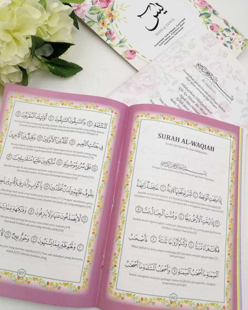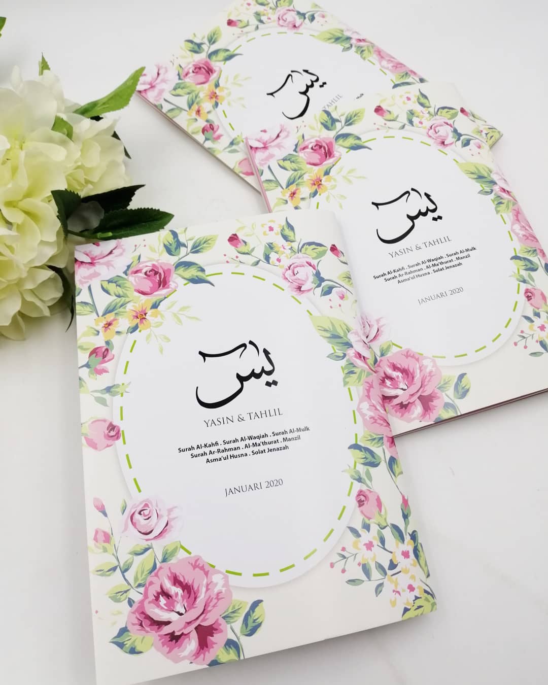 Kami berharap agar anda berpuas hati dengan servis yang tempahan yasin custom cover berikan. Buku yasin custom kami dilengkapi dengan Surah Yasin, Surah Al-Kahfi, Surah Al-Waqiah, Surah Al-Mulk, Surah Ar-Rahman, Al-Mathurat, Manzil, Asma’ul Husna, Solat Jenazah, Panduan Solat Jenazah dan pelbagai lagi content yang bermanfaat buat amalan harian anda. Kami mempunyai lebih 500 pilihan design yang pasti akan memuaskan hati anda semua.Untuk tempahan buku yasin custom, anda boleh terus click di sini atau whatsapp kami di 0192520041, atau terus ke showroom kami dengan waze: Angah Doorgift And Printing Sdn Bhd.