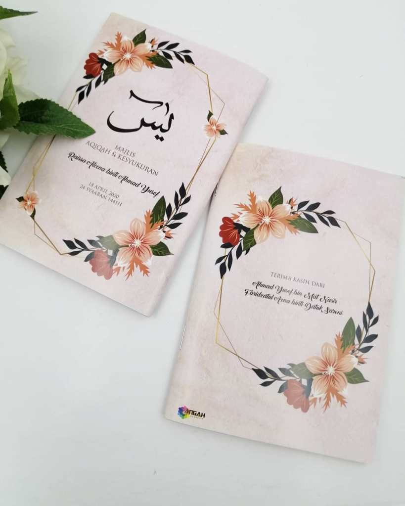Kalau dah buat majlis perkahwinan, majlis aqiqah, majlis kesyukuran, majlis cukur jambul takkan nak beri doorgift biasa-biasa kan? Mestilah nak yang cantik & berkat supaya majlis pun berjalan dengan lancar DAN yang paling penting tetamu tak buang-buang doorgift tu kan 😉 Tempahan yassin, stiker & TQ tag ada menyediakan yasin untuk dijadikan doorgift ketika majlis anda. Apa yang lagi Istimewa? Terdapat 2 jenis Buku Yasin berserta tafsir Bahasa Melayu/English sebagai rujukan. Terdapat lebih 300 design untuk dipilih. Isi kandungan buku yasin berwarna. ‘Font’ nama dan perkataan mengikut kehendak anda. Yasin ada size besar dan sederhana. Layout yang kemas dengan tulisan yang jelas. Terdapat Tahlil, Doa Arwah, Doa Selamat, Doa Penutup, Asmaul Husna, Zikir Hardan dan lain-lain.Untuk tempahan buku yasin custom, anda boleh terus click di sini or whatsapp kami 0192520041, atau terus ke showroom kami dengan waze: Angah Doorgift And Printing Sdn Bhd