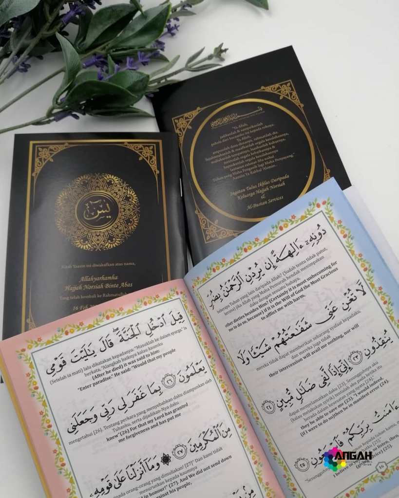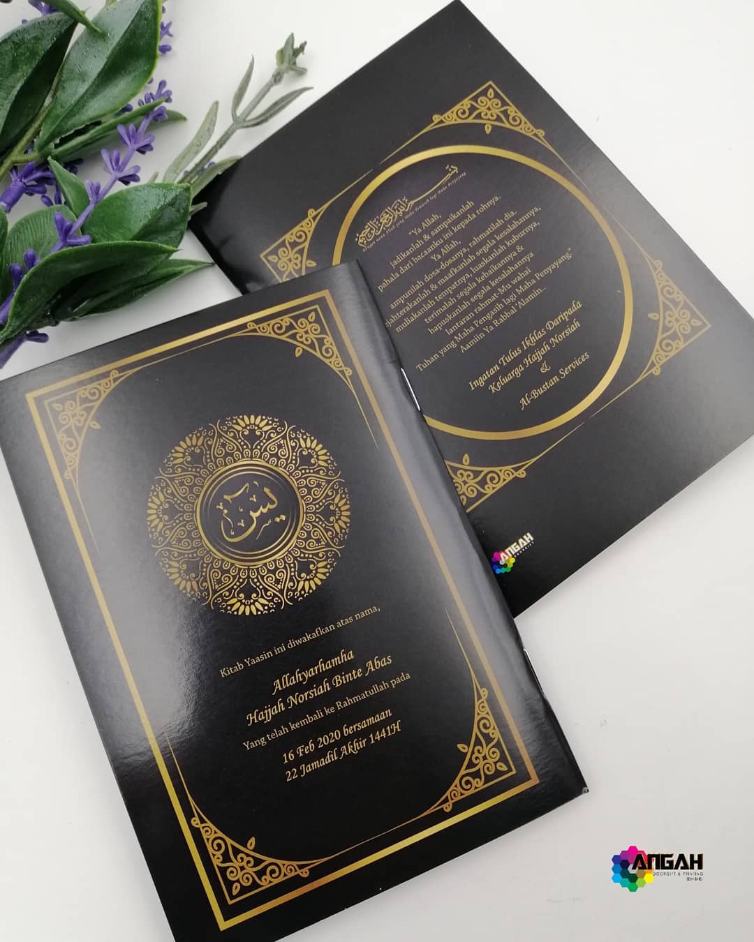 Untuk tempahan buku yasin custom, anda boleh terus click di sini or whatsapp kami 0192520041, atau terus ke showroom kami dengan waze: Angah Doorgift And Printing Sdn Bhd