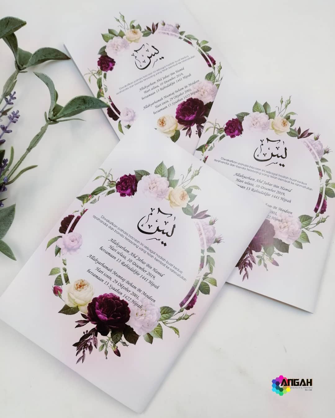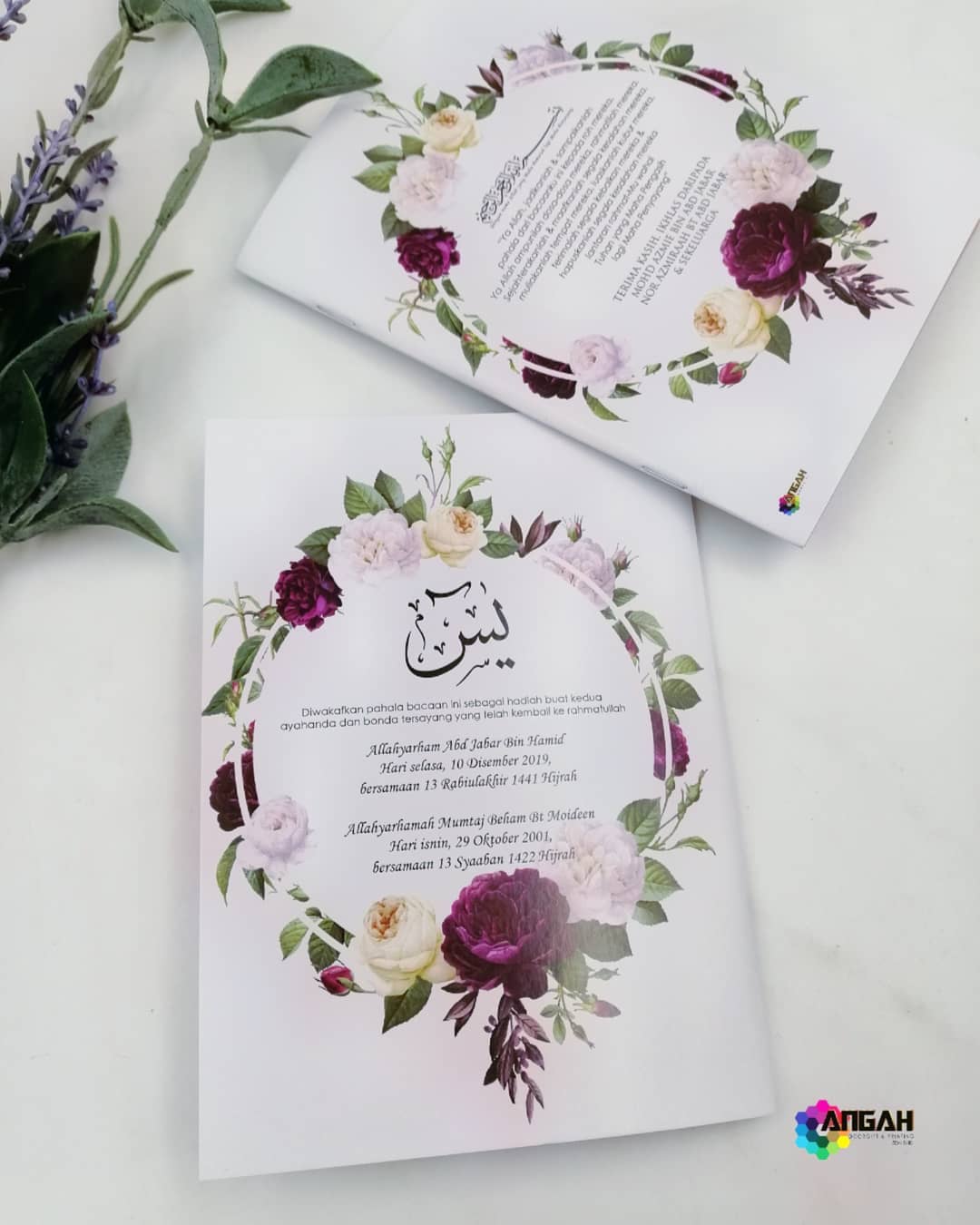 Untuk tempahan buku yasin custom, anda boleh terus click di sini or whatsapp kami 0192520041, atau terus ke showroom kami dengan waze: Angah Doorgift And Printing Sdn Bhd