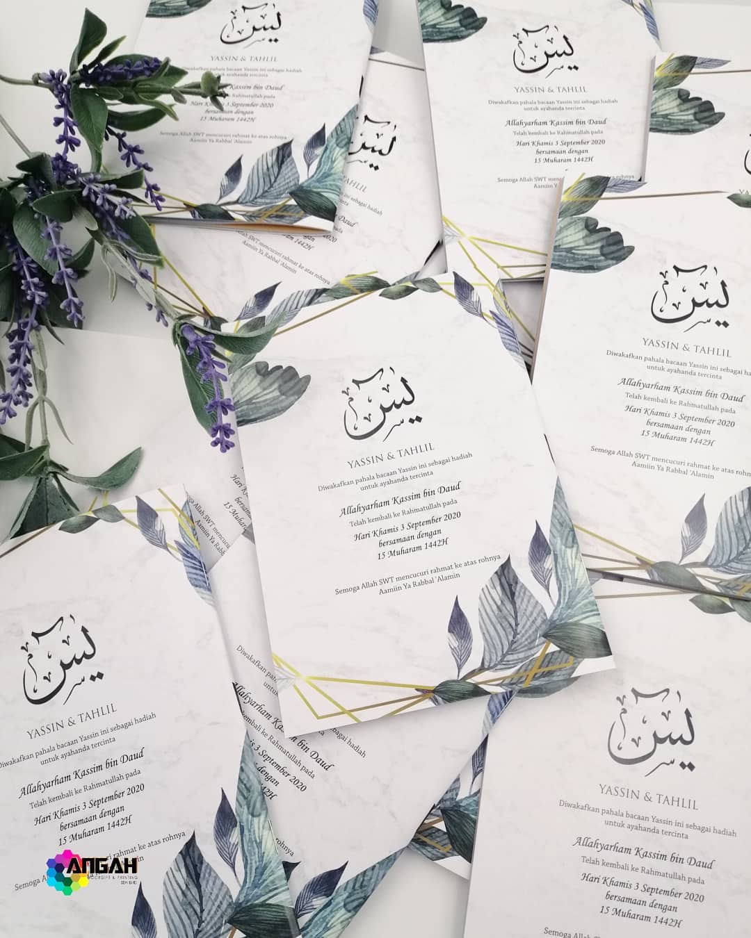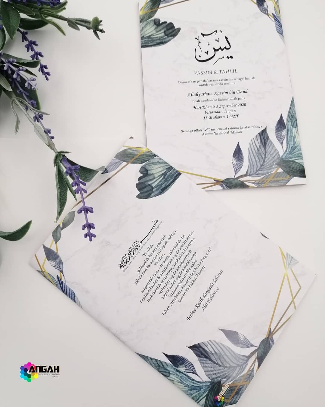 Untuk tempahan buku yasin custom, anda boleh terus click di sini atau whatsapp kami di 0192520041, atau terus ke showroom kami dengan waze: Angah Doorgift And Printing Sdn Bhd.