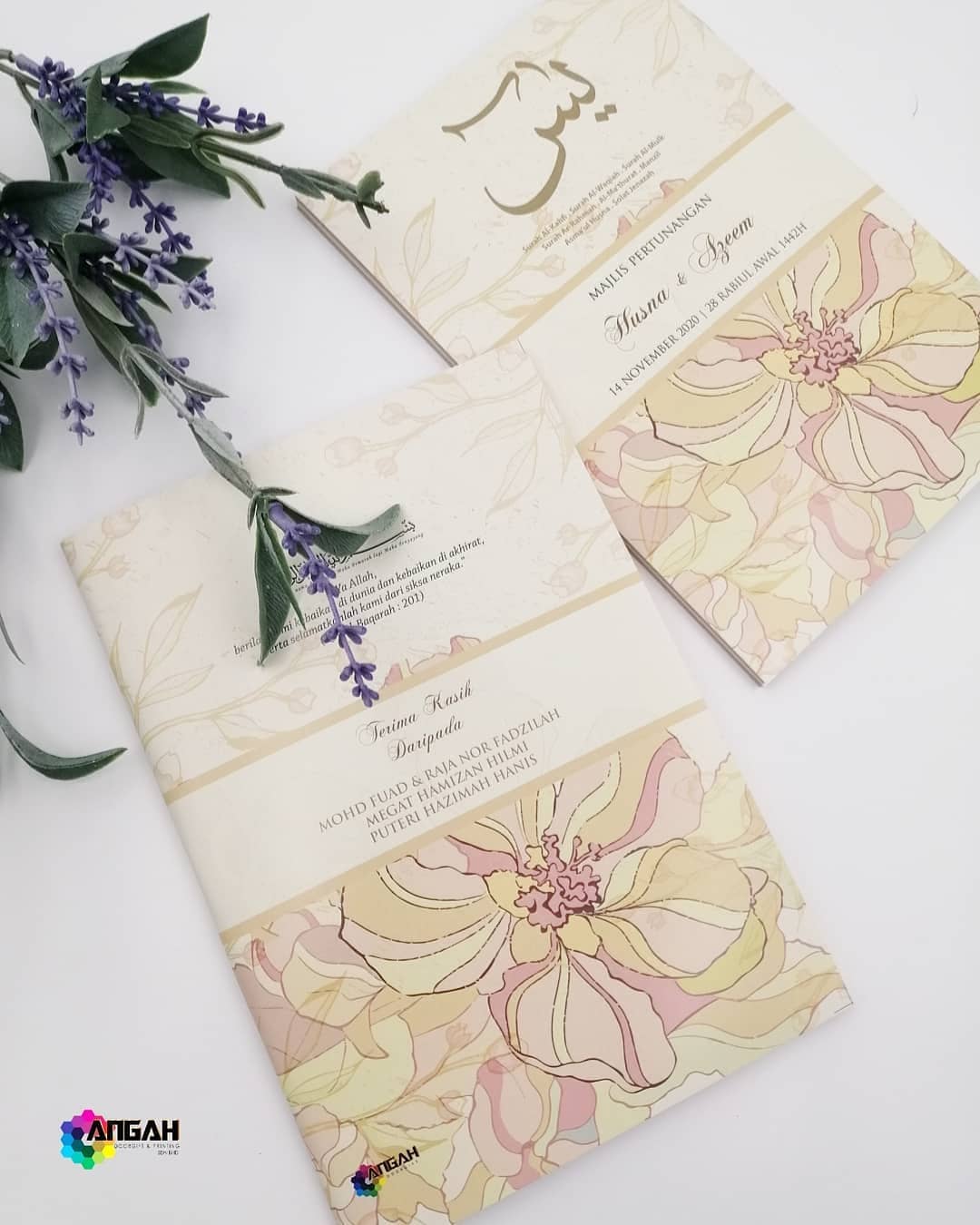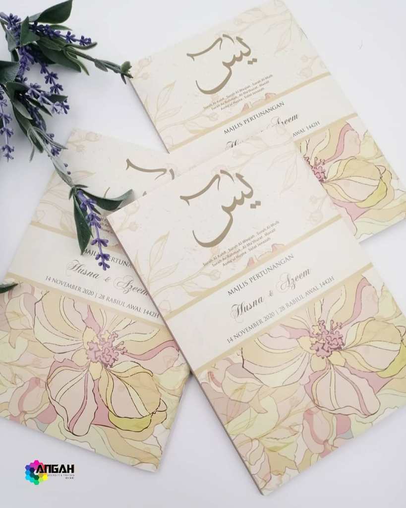 Untuk tempahan buku yasin custom, anda boleh terus click di sini atau whatsapp kami di 0192520041, atau terus ke showroom kami dengan waze: Angah Doorgift And Printing Sdn Bhd.