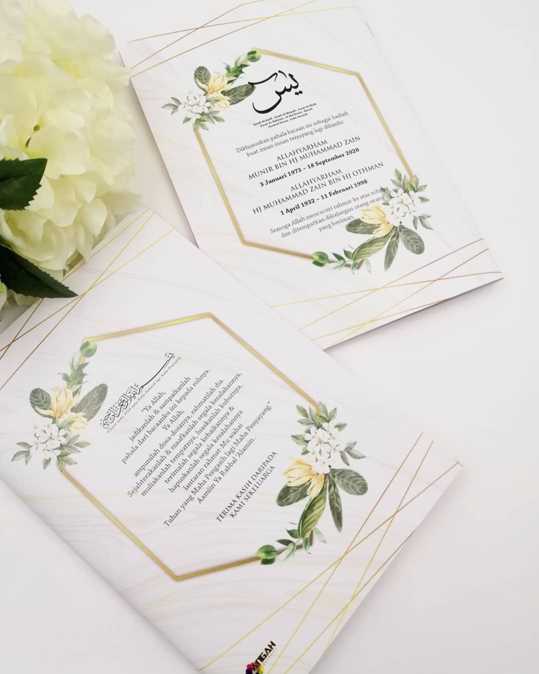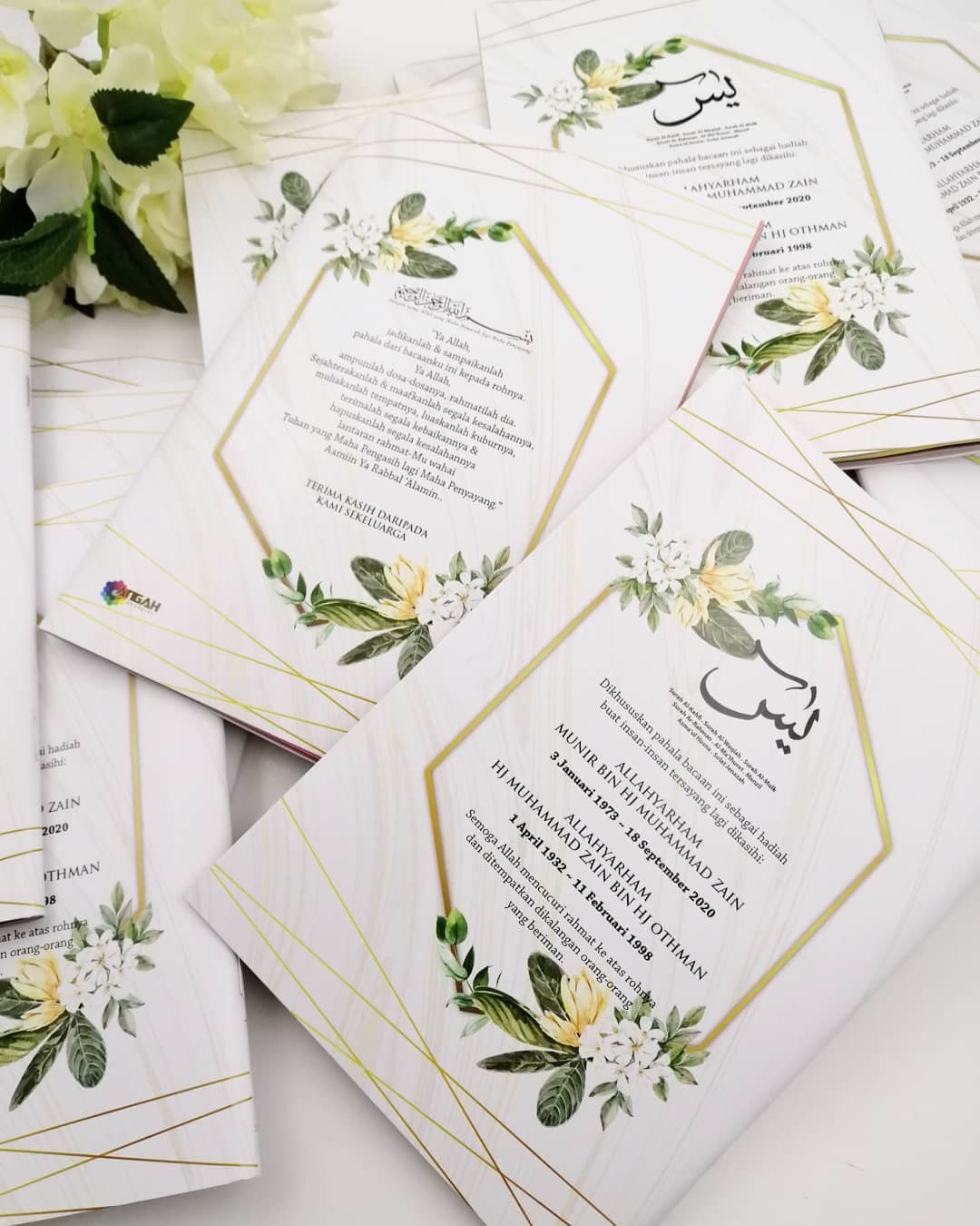 Kami di Buku Yasin Customised menjual Yasin yang berkualiti dan di design khas untuk memudahkan pembacaan dan pemahaman maksud ayat dengan tulisan yang besar, jelas & cantik. Bukan itu sahaja, anda juga boleh meletakkan wording dan nama majlis anda pada cover Buku Yasin. Yang paling penting, dengan satu buku yasin anda boleh mengamalkan pelbagai surah seperti Al-Waqiah, Al-Mulk, Ar-Rahman, Al-Mathurat, Al-Kahfi, Asma’ul Husna, Panduan Solat Jenazah, Panduan Solat Jamak & Qasar, Manzil & Yasin. Bestkan semua ada dalam satu buku yasin sahaja dan mudah untuk dibawa serta diamalkan dimana-mana sahaja.Untuk tempahan buku yasin custom, anda boleh terus click di sini or whatsapp kami 0192520041, atau terus ke showroom kami dengan waze: Angah Doorgift And Printing Sdn Bhd.