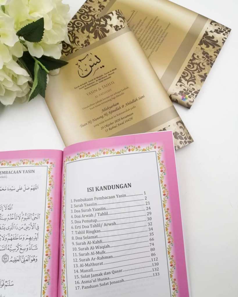 Semoga buku yasin custom yang kami hasilkan ini dapat memberi kebaikan dan tambah nilai kepada anda. Terima kasih di atas tempahan buku yasin custom half A4 ini.