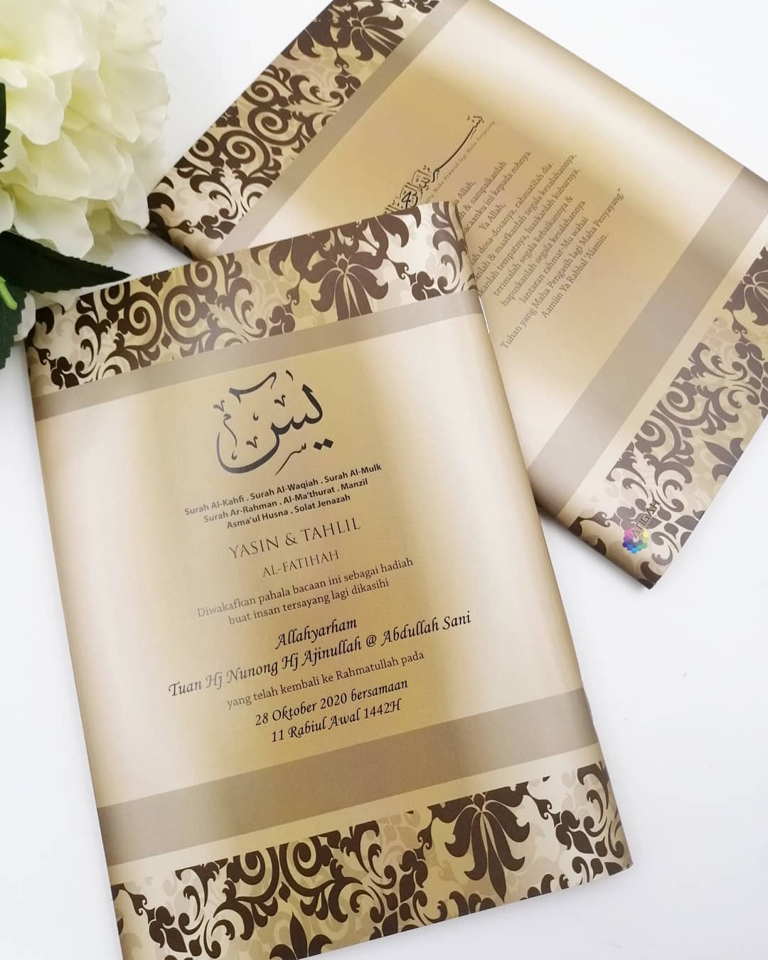 Untuk tempahan buku yasin custom, anda boleh terus click di sini atau whatsapp kami di 0192520041, atau terus ke showroom kami dengan waze: Angah Doorgift And Printing Sdn Bhd.