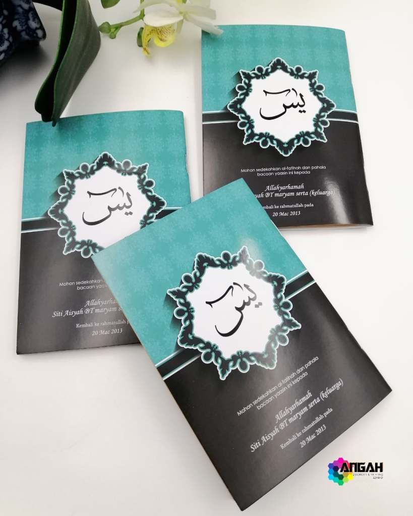 Untuk tempahan buku yasin custom, anda boleh terus click di sini atau whatsapp kami di 0192520041, atau terus ke showroom kami dengan waze: Angah Doorgift And Printing Sdn Bhd.