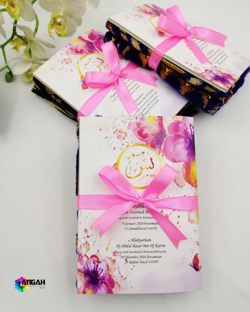 Untuk tempahan buku yasin custom, anda boleh terus click di sini atau whatsapp kami di 0192520041, atau terus ke showroom kami dengan waze: Angah Doorgift And Printing Sdn Bhd.