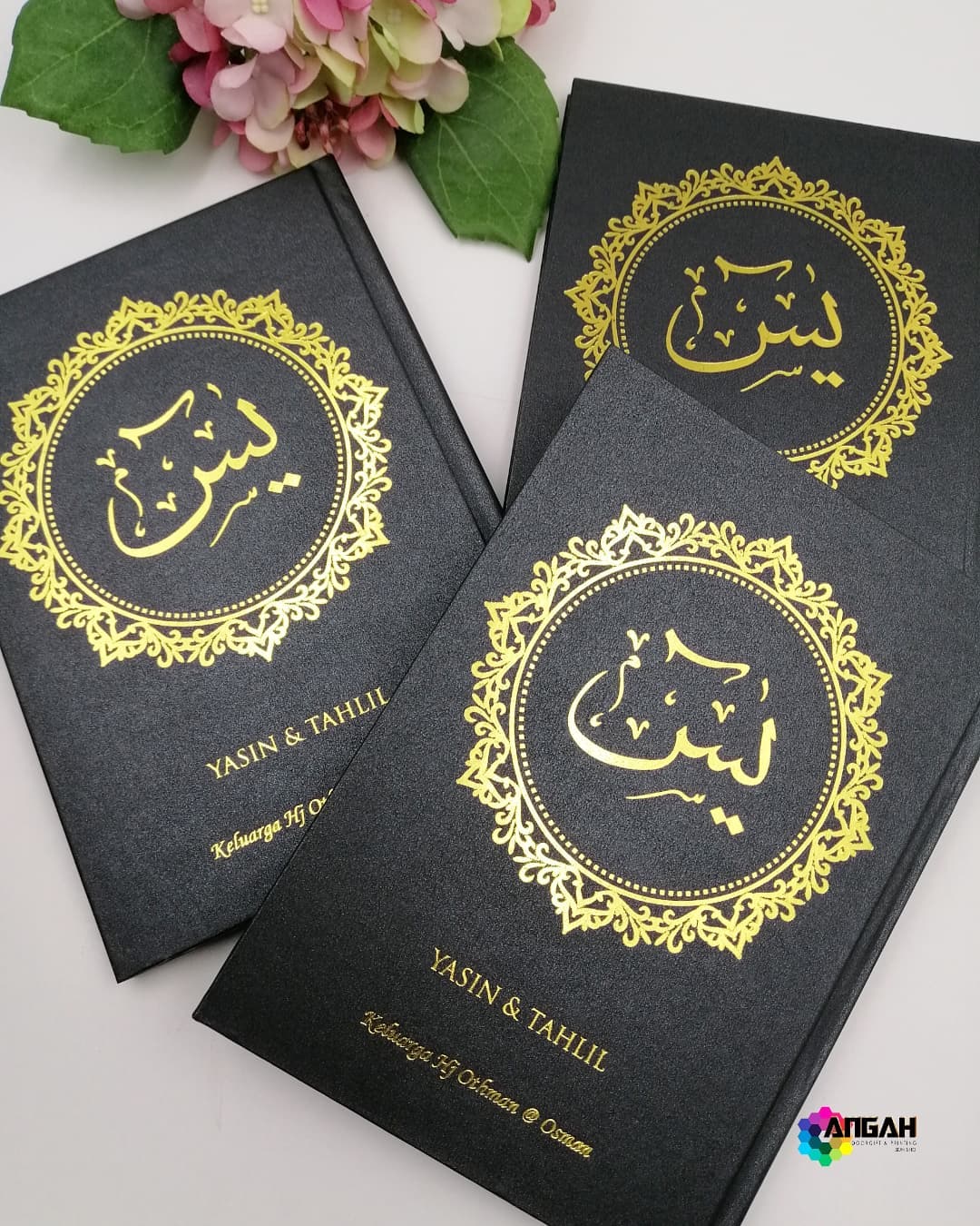 Untuk tempahan buku yasin custom, anda boleh terus click di sini or whatsapp kami 0192520041, atau terus ke showroom kami dengan waze: Angah Doorgift And Printing Sdn Bhd.