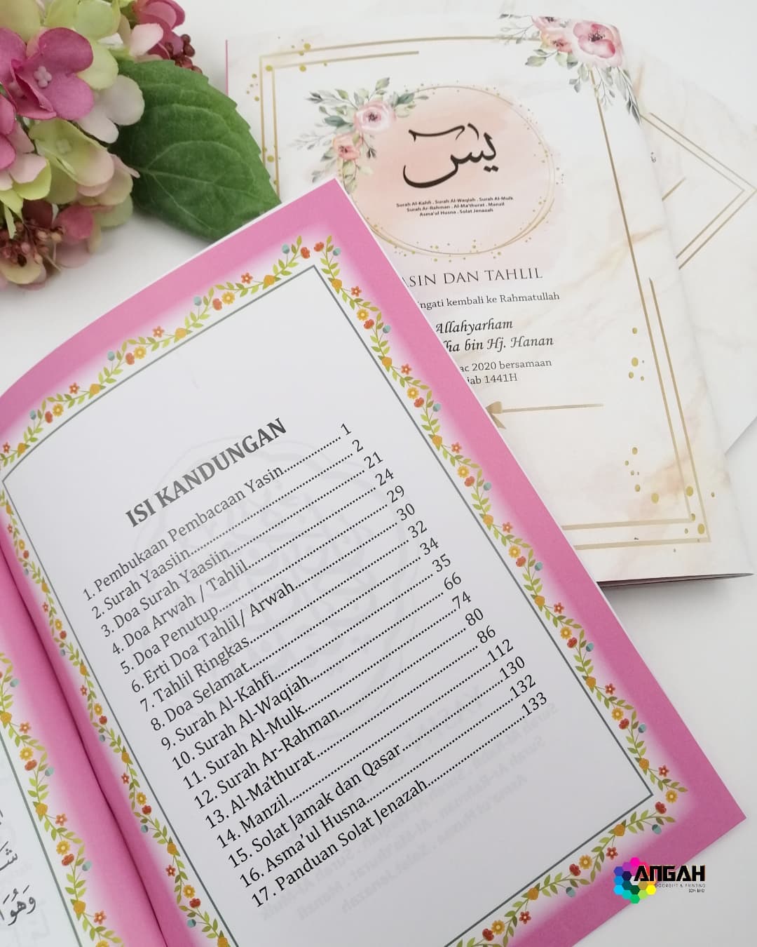 Untuk tempahan buku yasin custom, anda boleh terus click di sini atau whatsapp kami di 0192520041, atau terus ke showroom kami dengan waze: Angah Doorgift And Printing Sdn Bhd.Love
