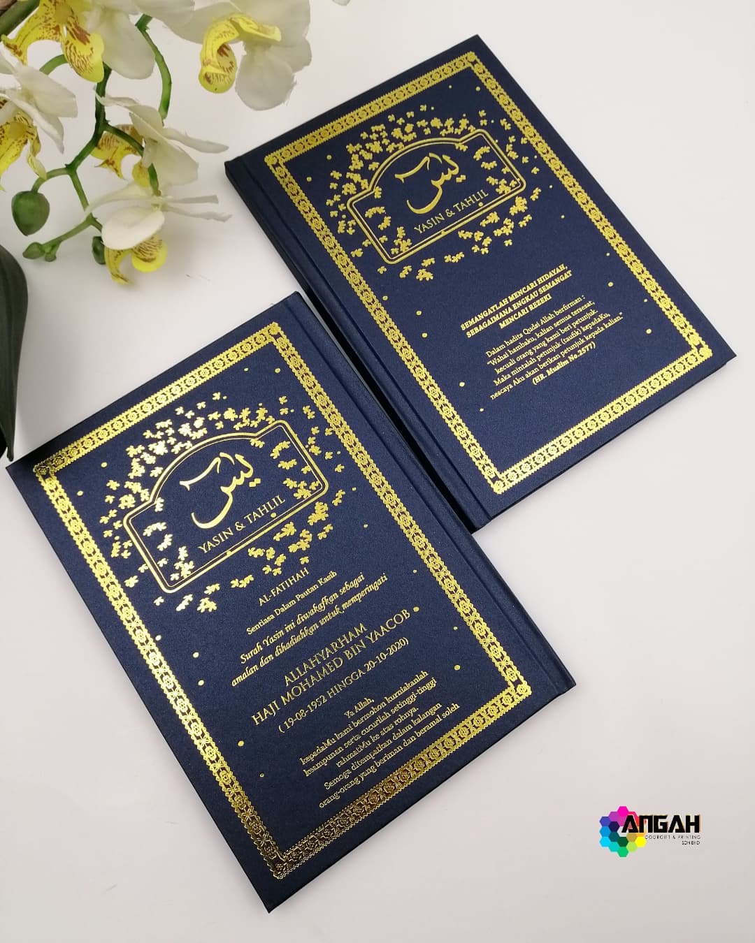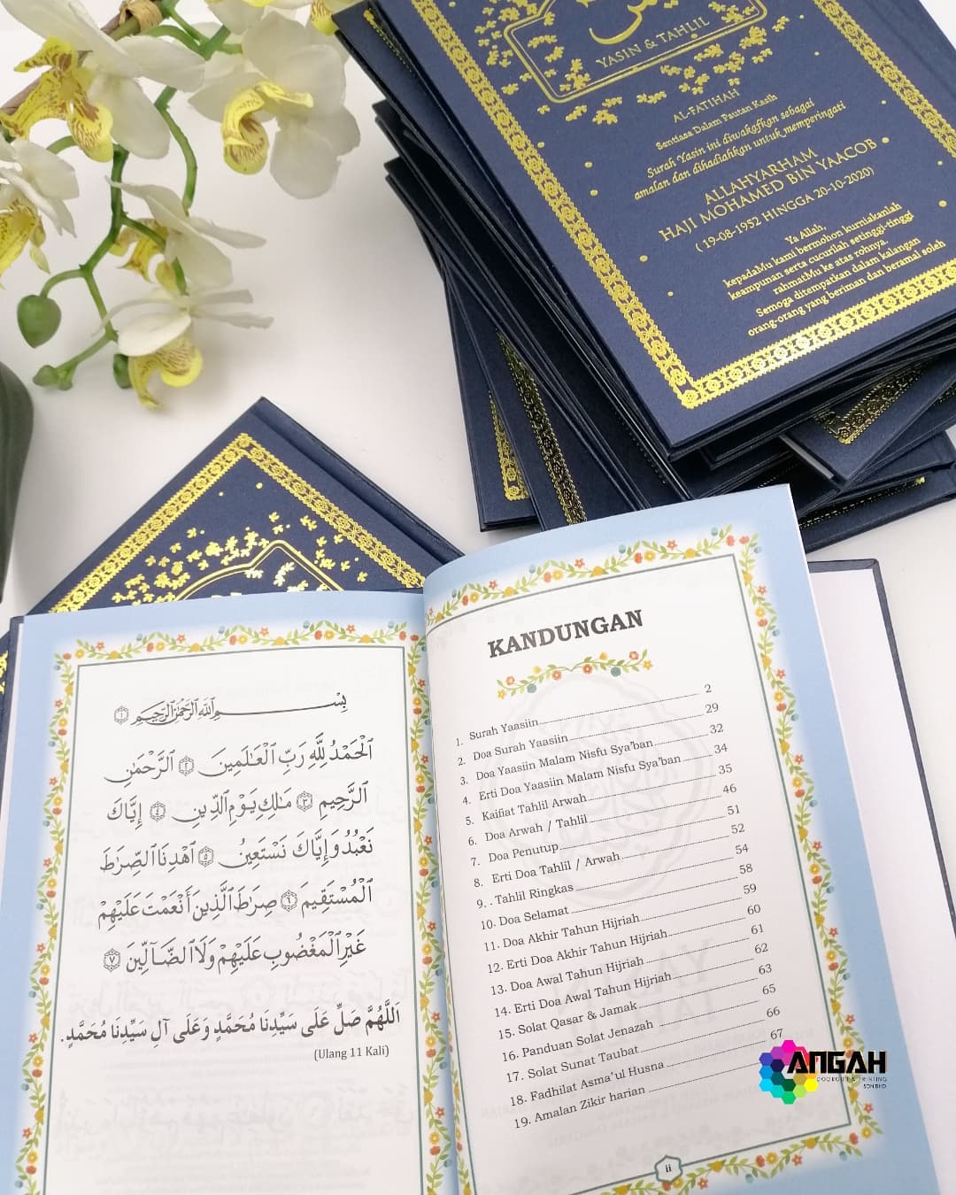 Untuk tempahan buku yasin custom, anda boleh terus click di sini or whatsapp kami 0192520041, atau terus ke showroom kami dengan waze: Angah Doorgift And Printing Sdn Bhd.