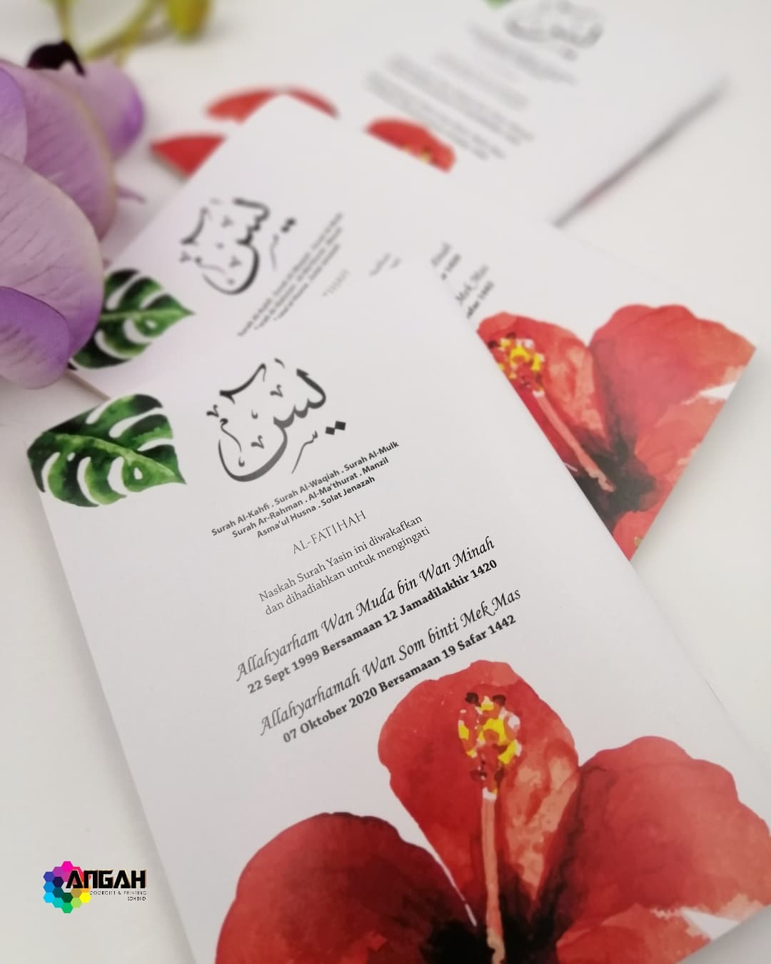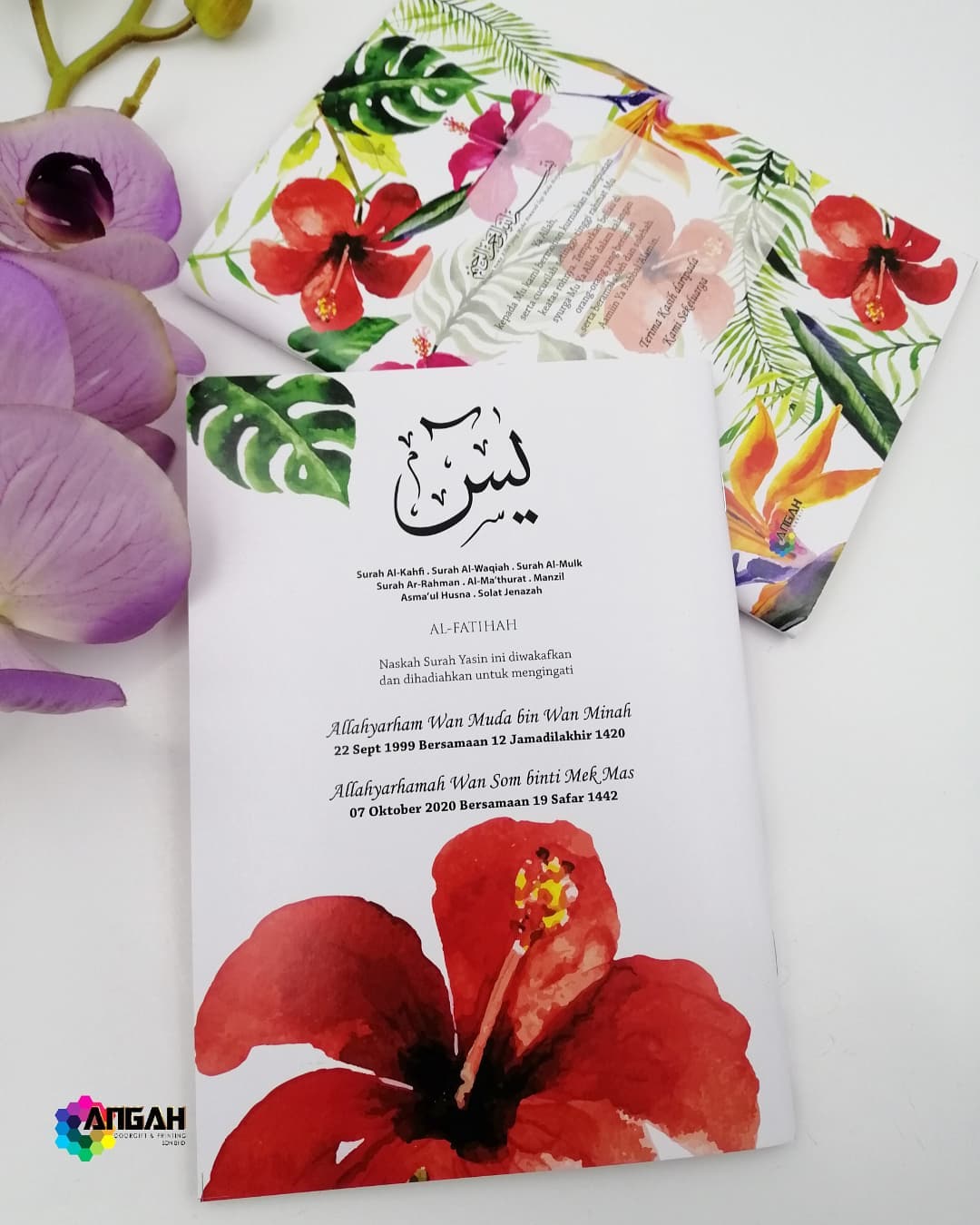 Untuk tempahan buku yasin custom, anda boleh terus click di sini or whatsapp kami 0192520041, atau terus ke showroom kami dengan waze: Angah Doorgift And Printing Sdn Bhd