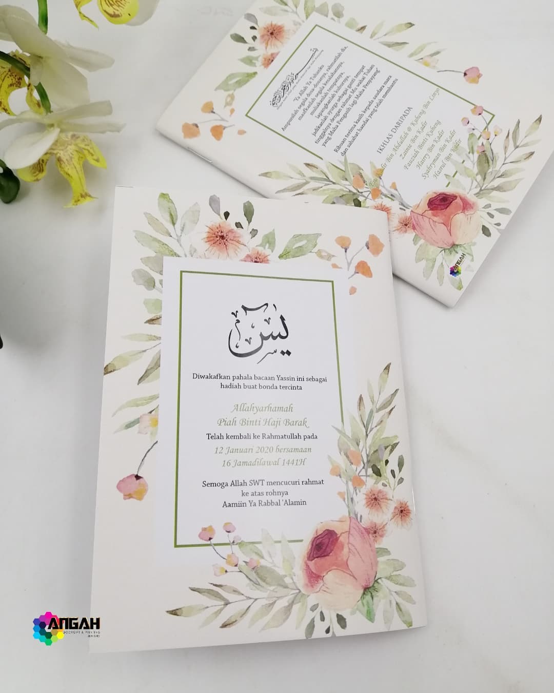 Untuk tempahan buku yasin custom, anda boleh terus click di sini or whatsapp kami 0192520041, atau terus ke showroom kami dengan waze: Angah Doorgift And Printing Sdn Bhd.Love